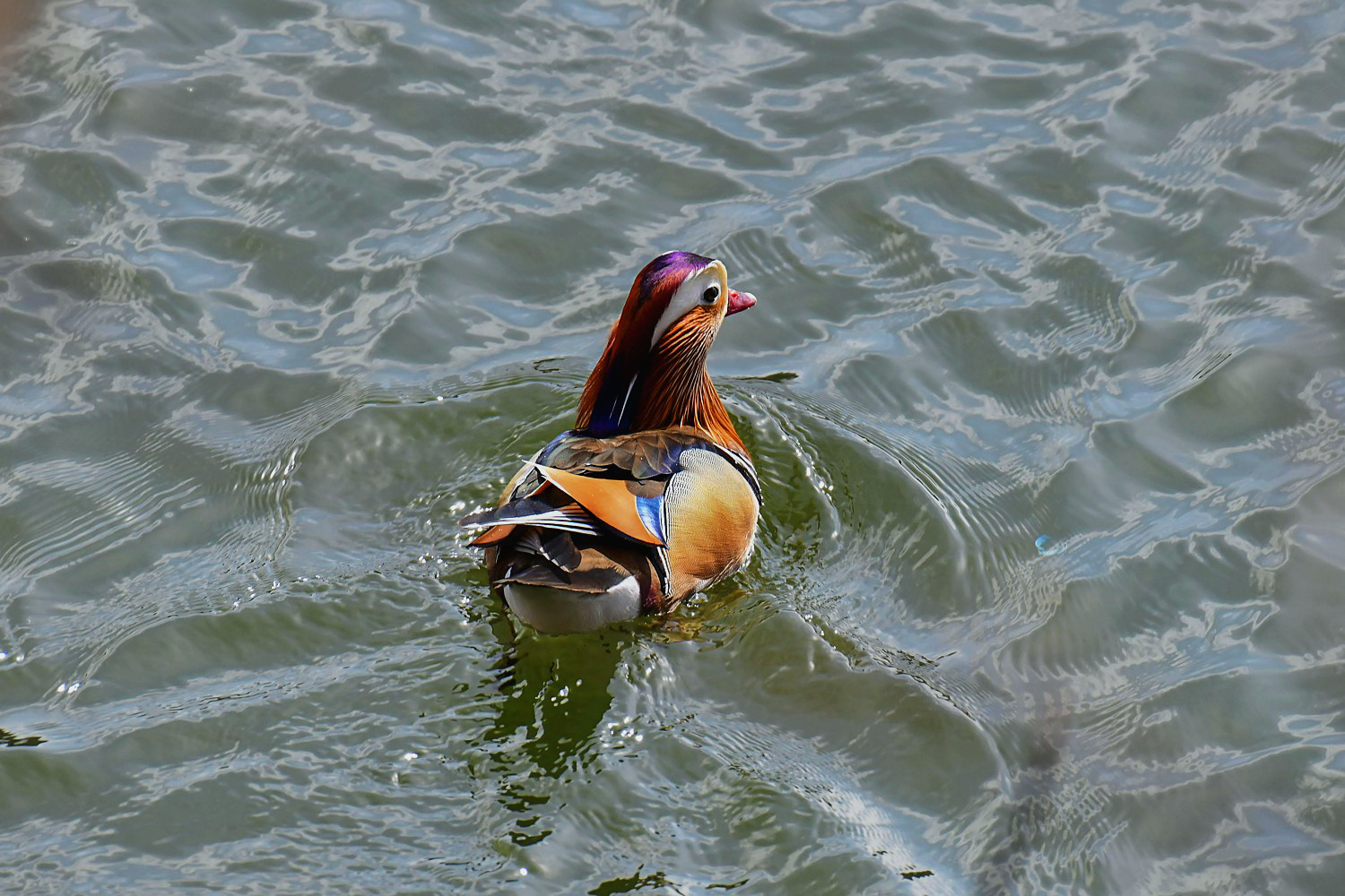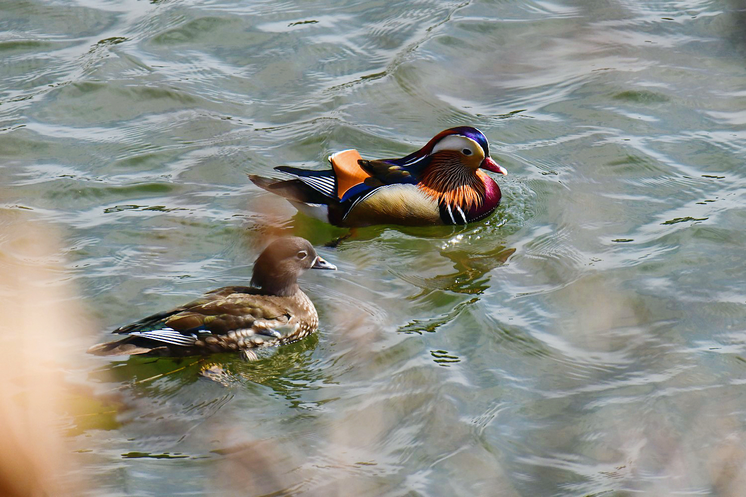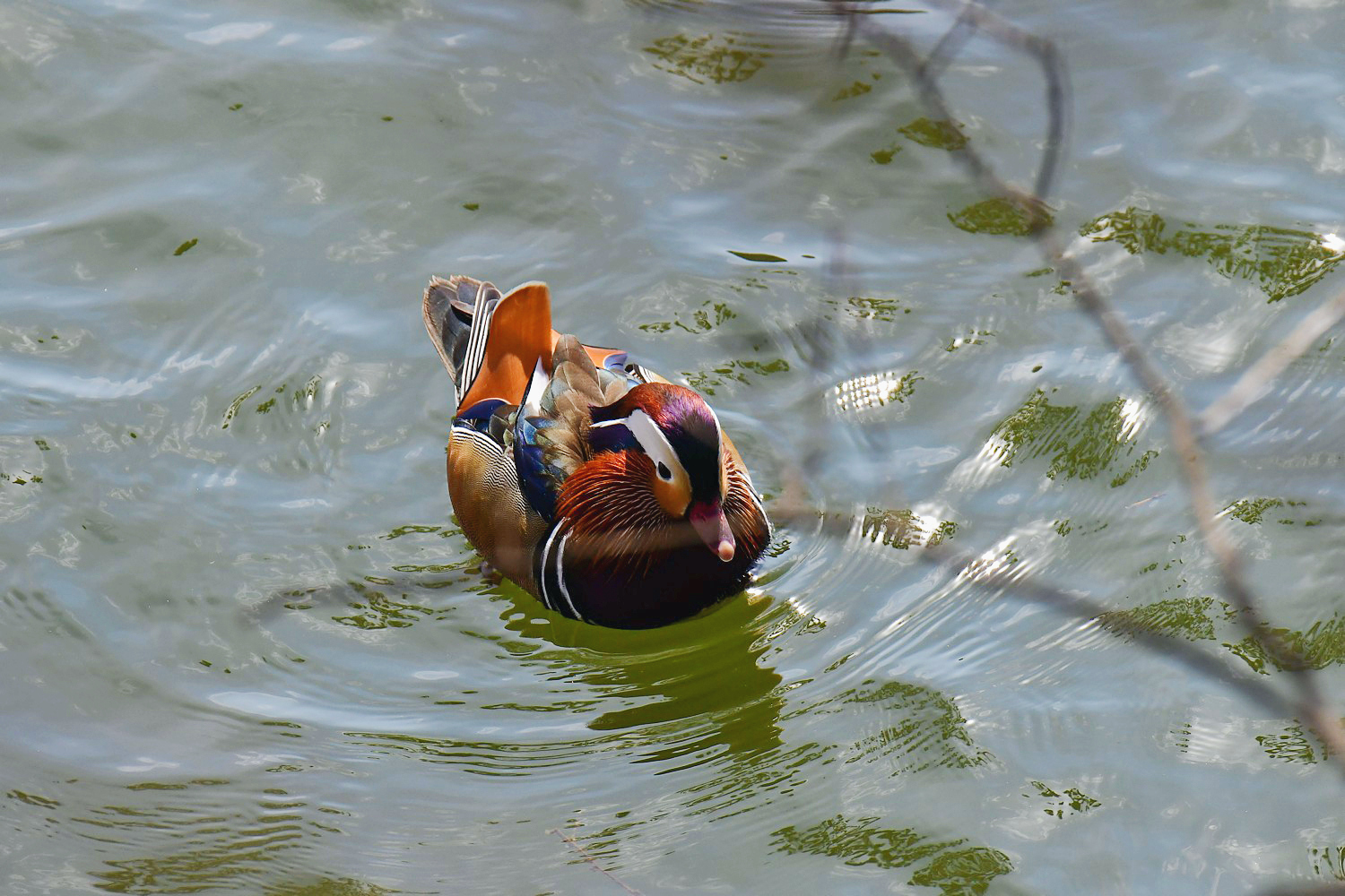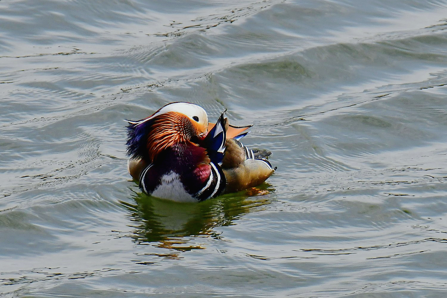 The mandarin ducks are beautifully feathering for the breeding season. Taking this picture from top to bottom, I think the feathers are more detailed and the color is beautiful.