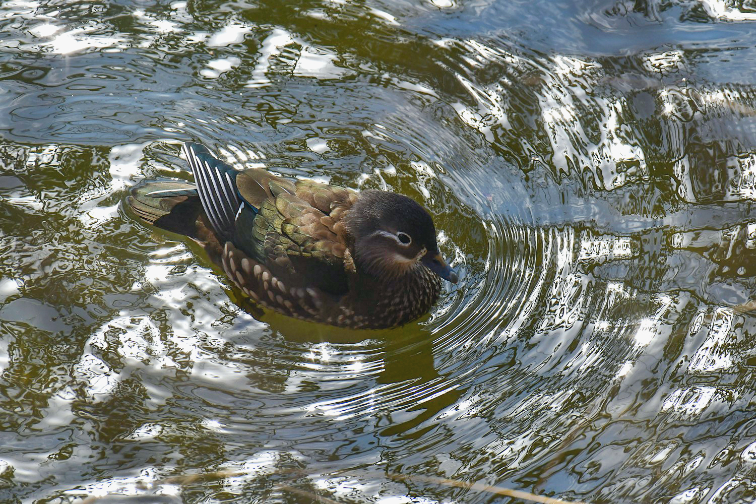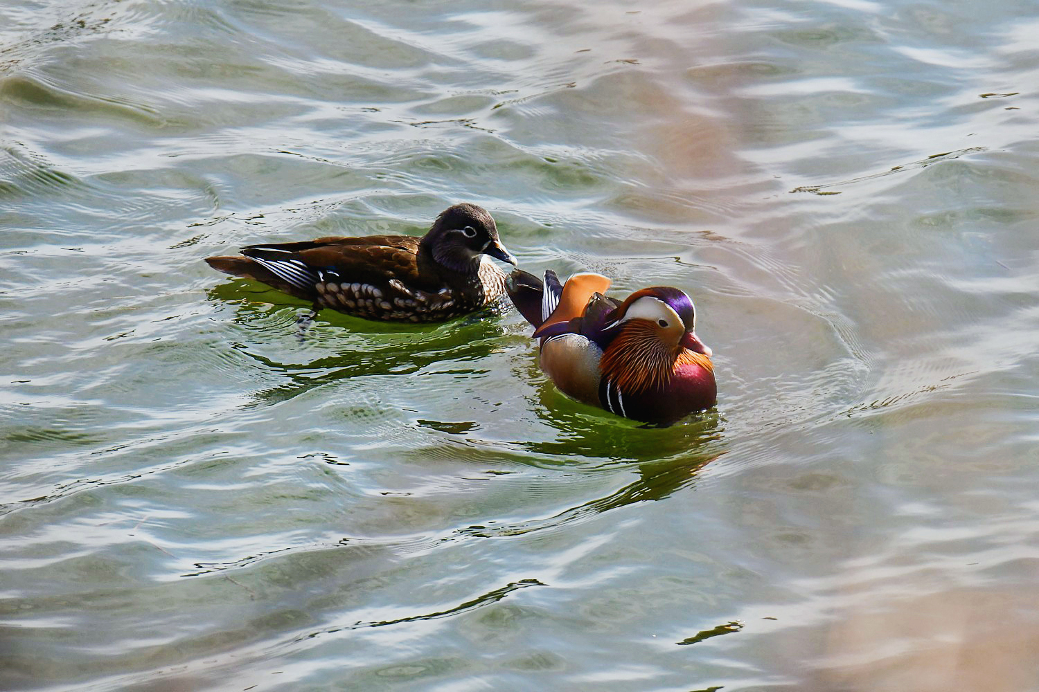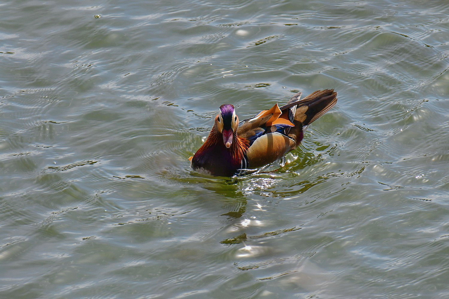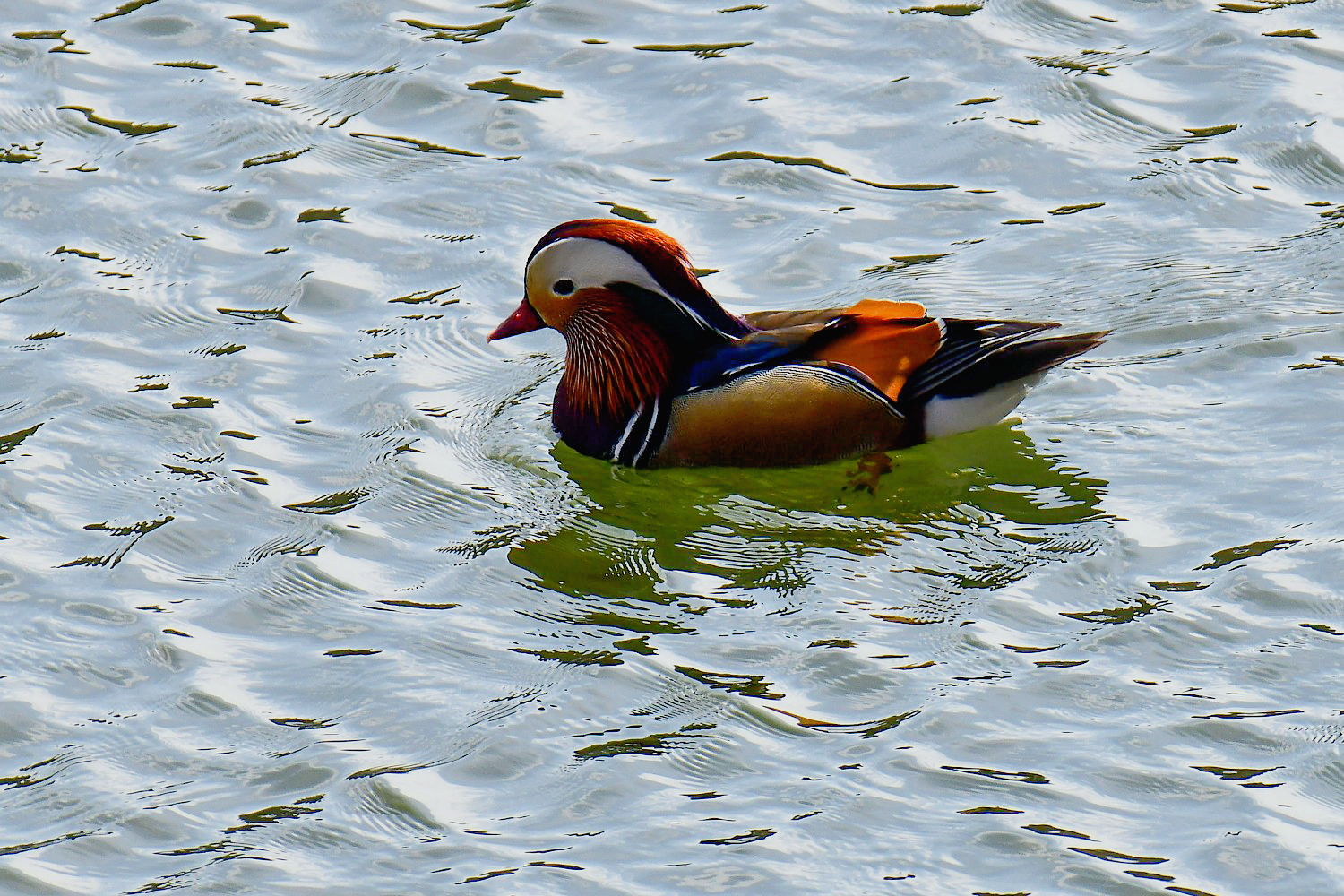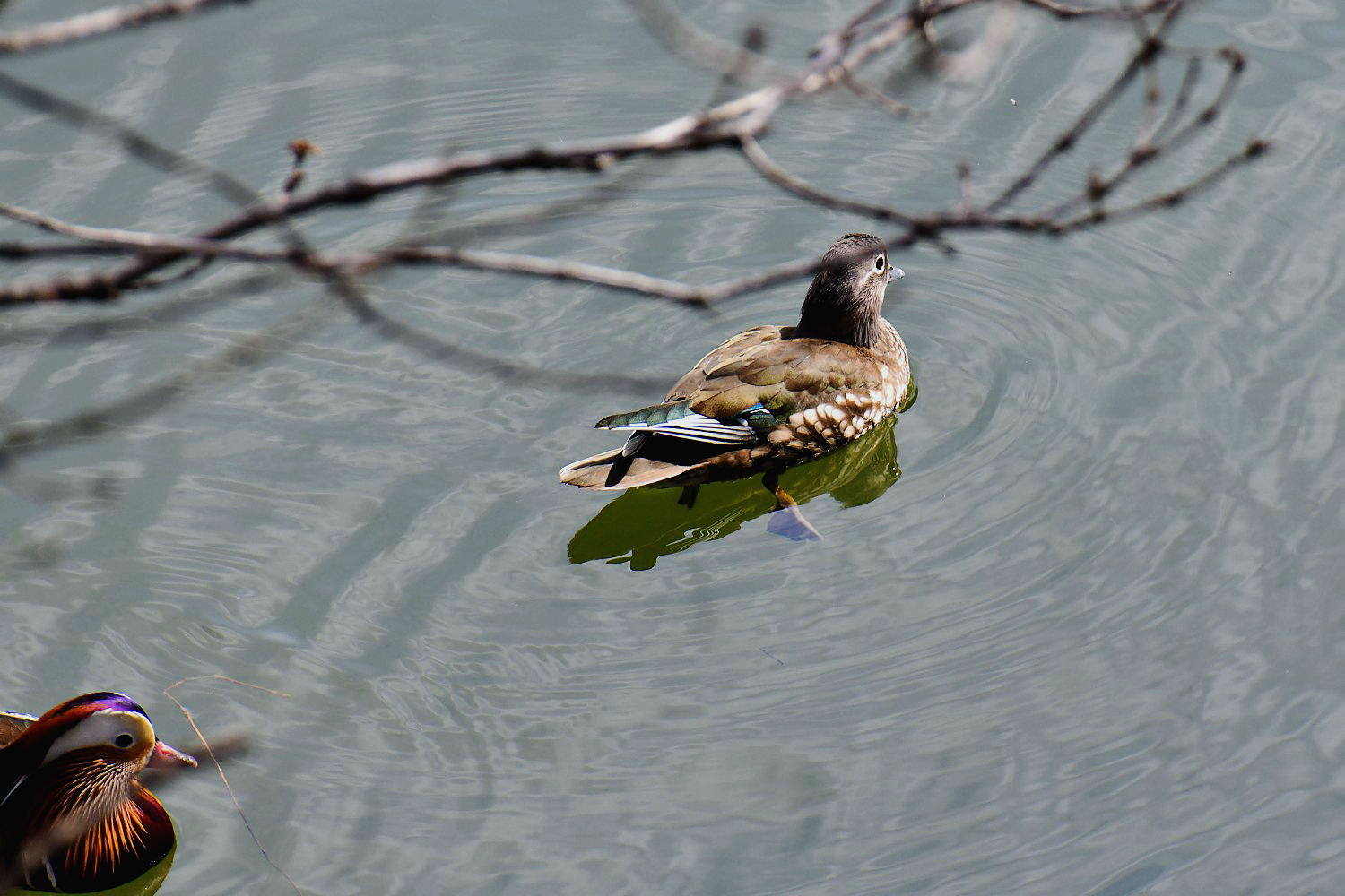 The mandarin ducks are beautifully feathering for the breeding season. Taking this picture from top to bottom, I think the feathers are more detailed and the color is beautiful.