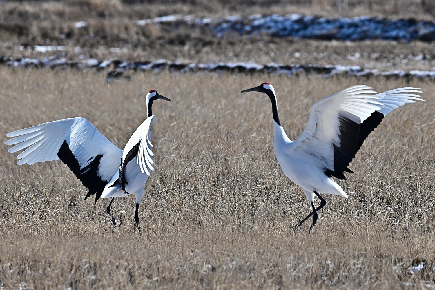 In the spring and summer, the migratory populations of the red-crowned crane breed in Siberia, Northeast China and occasionally in north-eastern Mongolia. The breeding range centers in Lake Khanka, on the border of China and Russia.