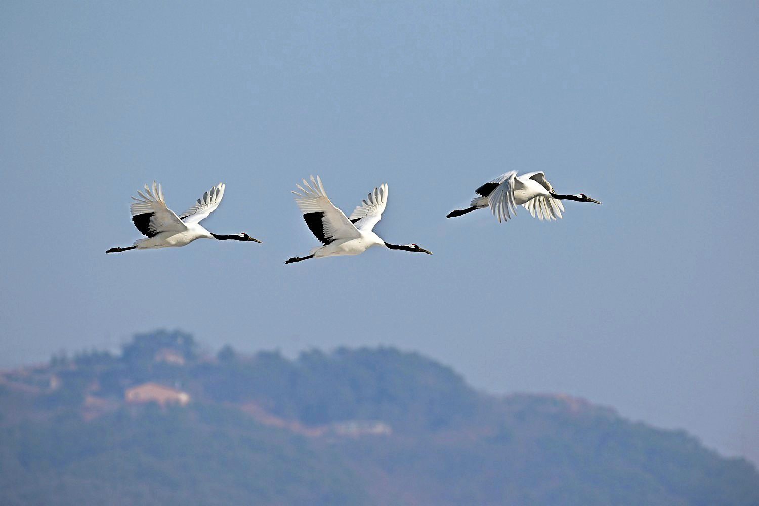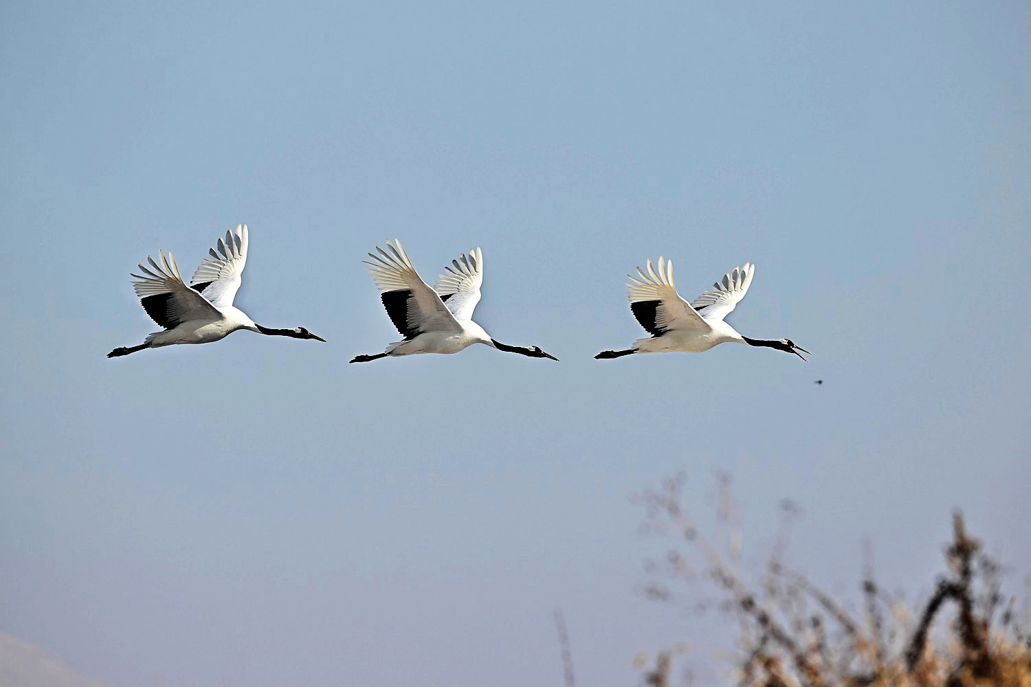 Later, in the fall, they migrate in flocks to the Korean Peninsula and east-central China to spend the winter.