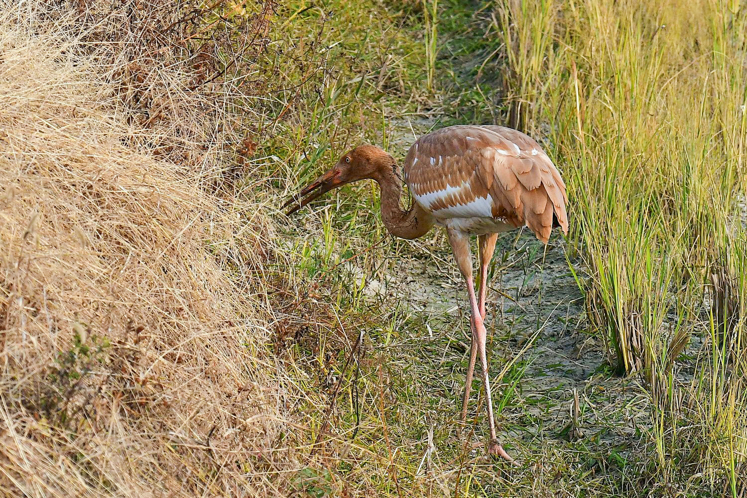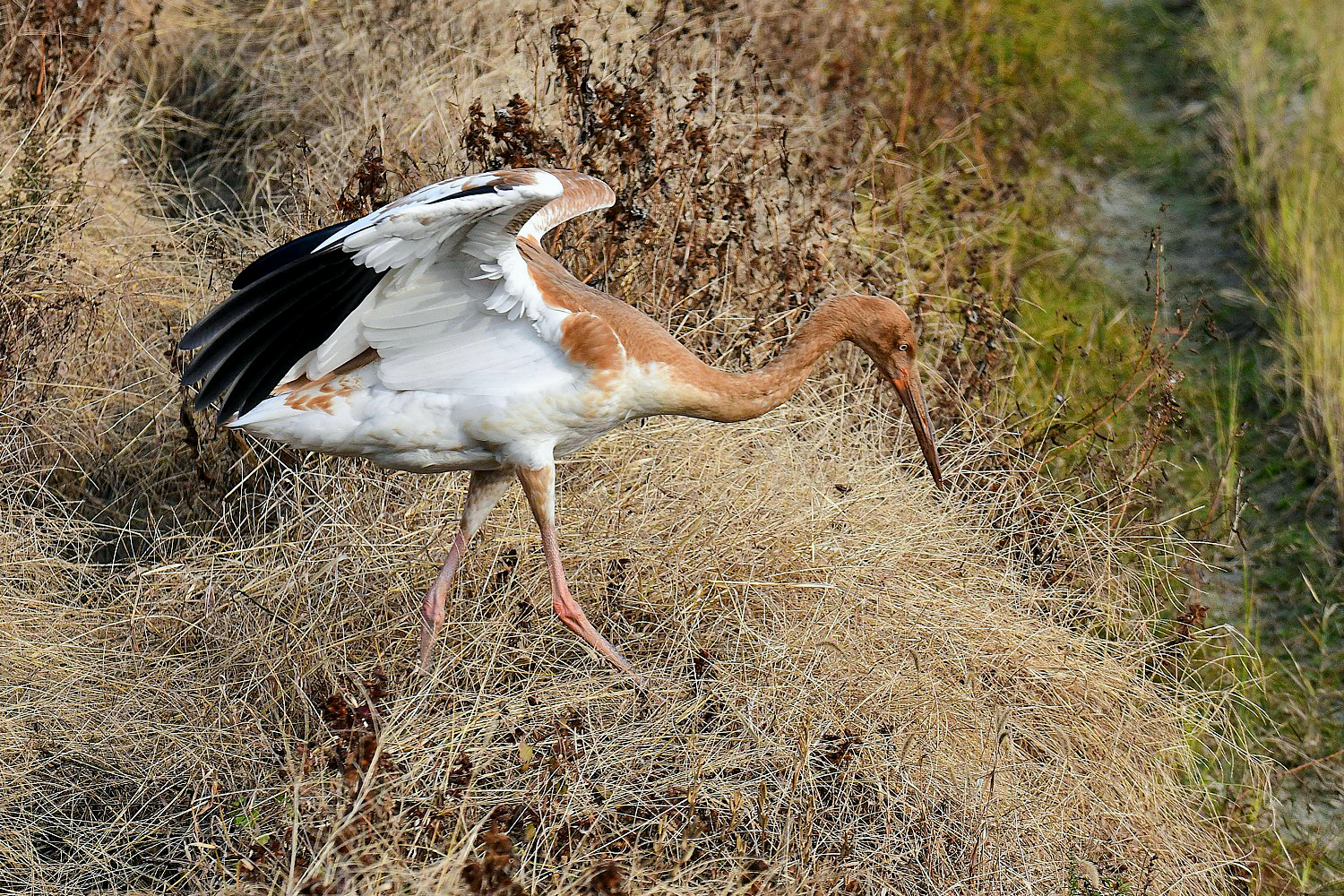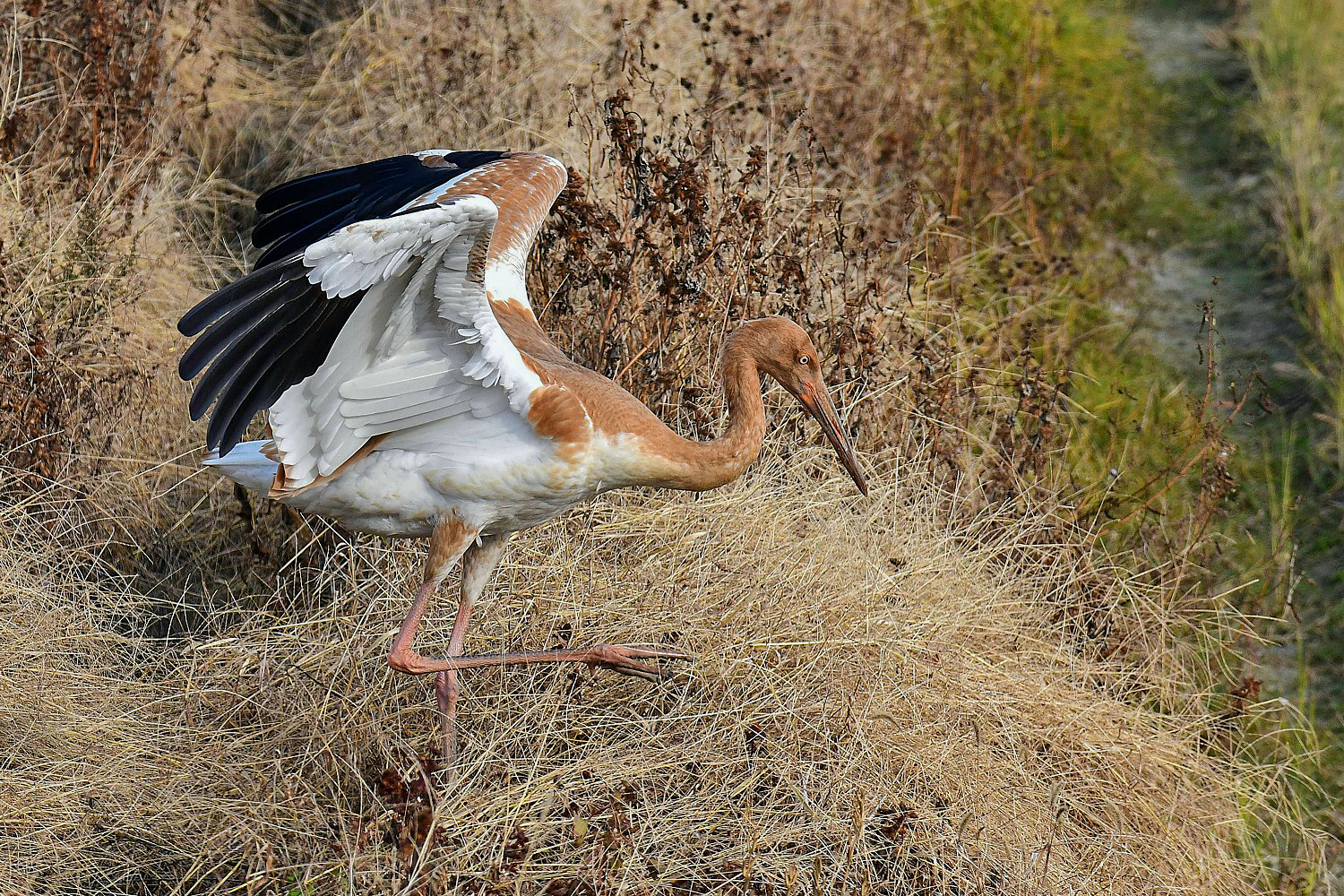 The Siberian crane also known as the Siberian white crane or the snow crane. The eastern populations migrate during winter to China, while the western population winters in Iran and in Bharatpur, India.