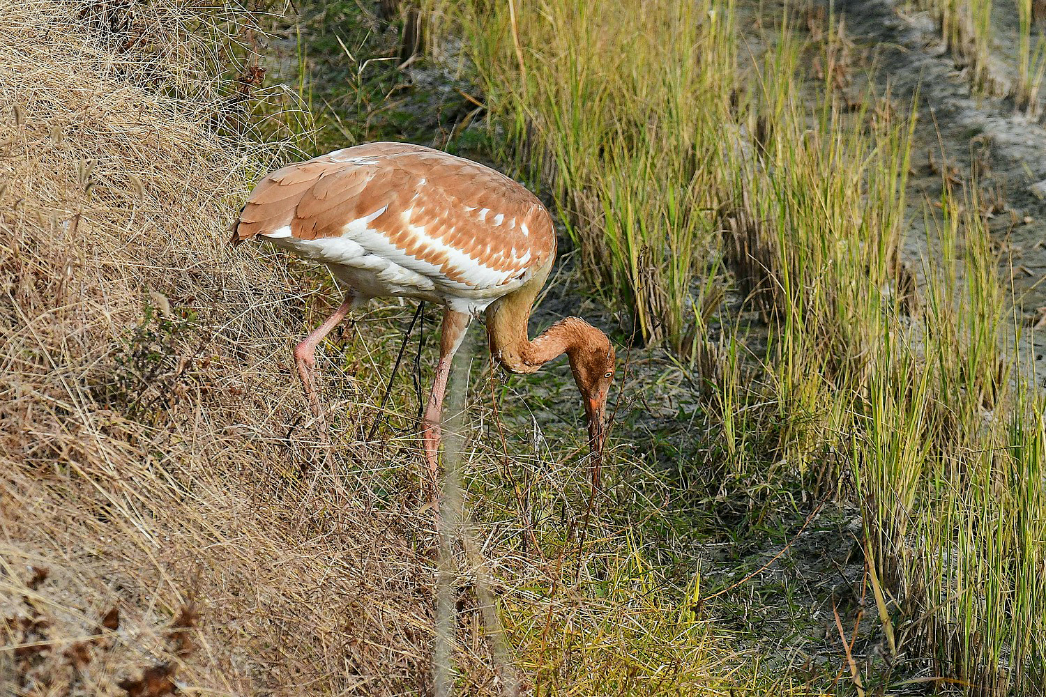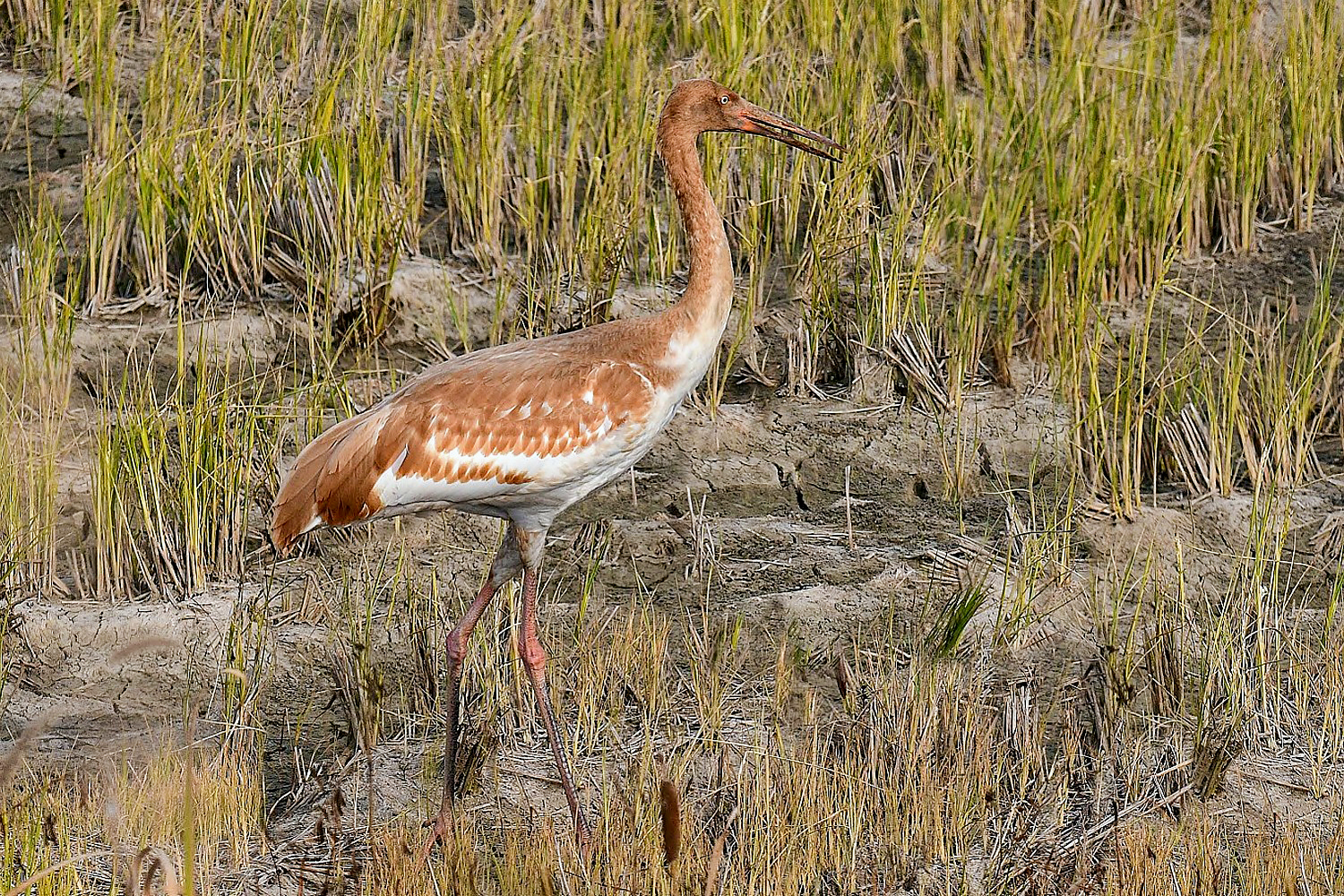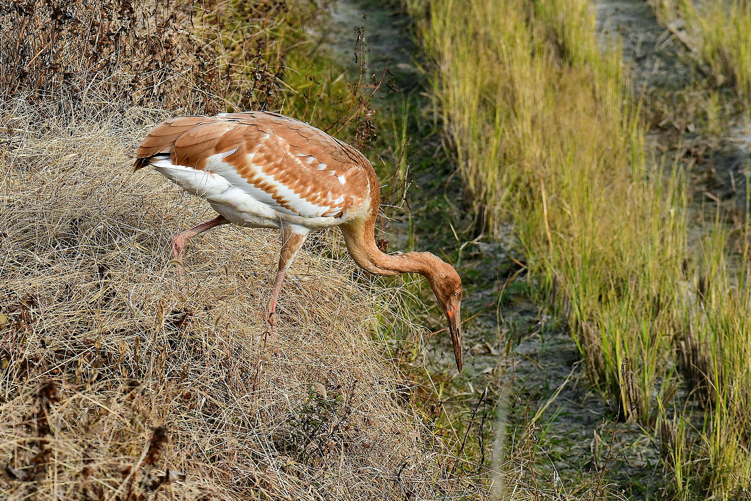 when I heard that a juvenile Siberian crane came to Cheonsuman Bay and then I went early in the next morning