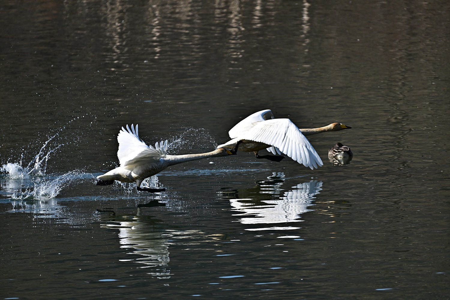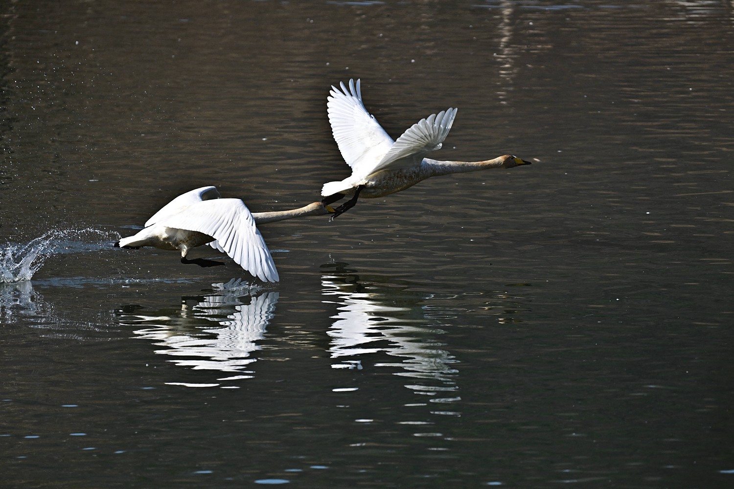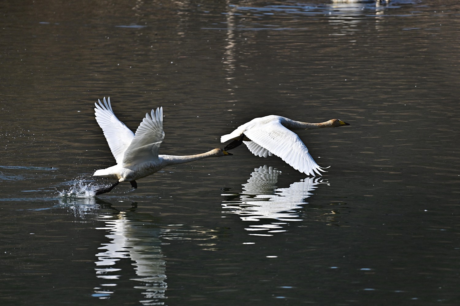 Whooper swans pair for life, and their cygnets stay with them all winter; they are sometimes joined by offspring from previous years.