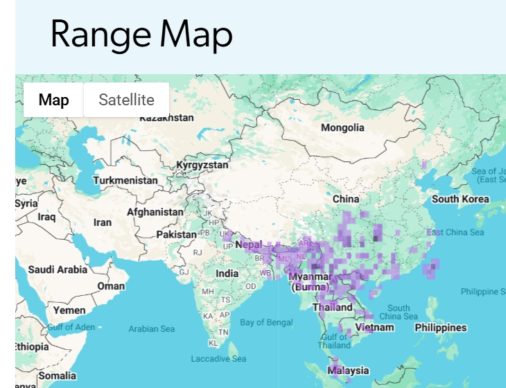 It is found in Bangladesh, Bhutan, Cambodia, India, Laos, Malaysia, Myanmar, Nepal, Taiwan, Thailand, and Vietnam.