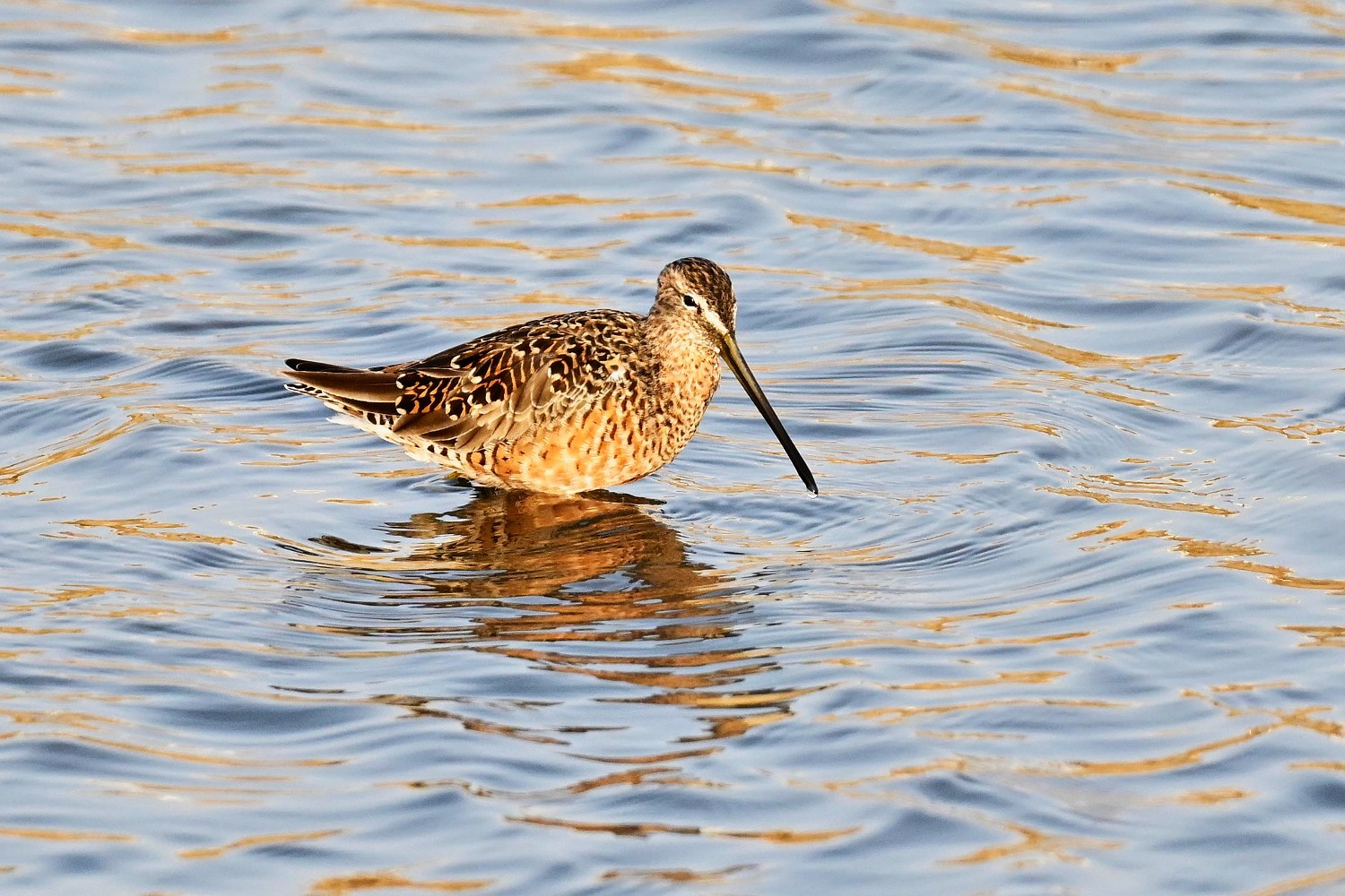 긴부리도요는 몸의 크기가 중간 정도이며, 부리 길이가 머리의 두 배이다.