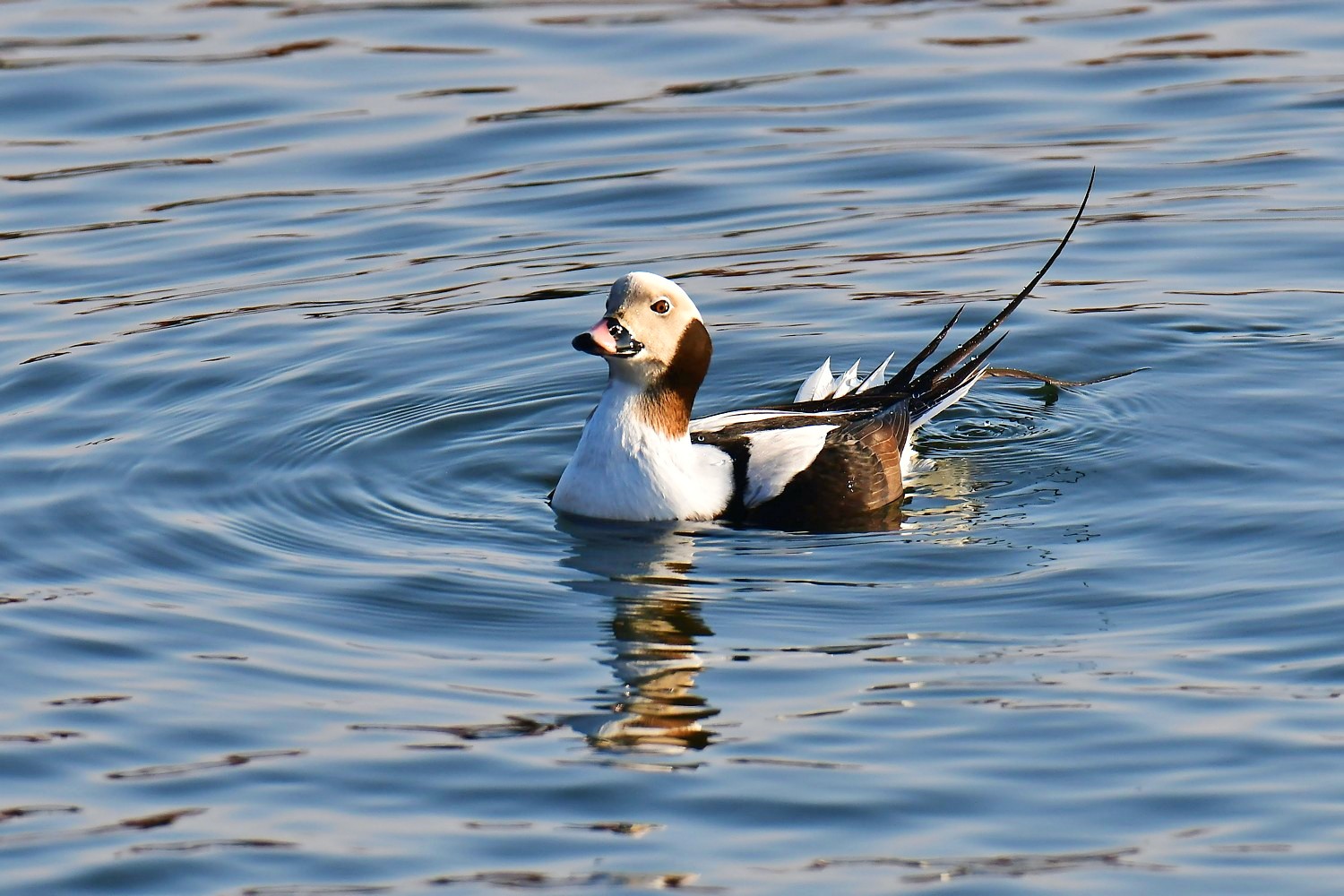 수컷은 길고 뾰족한 꼬리 (길이 10~15cm)와 분홍색 띠가 교차하는 짙은 회색 부리를 가지고 있습니다.