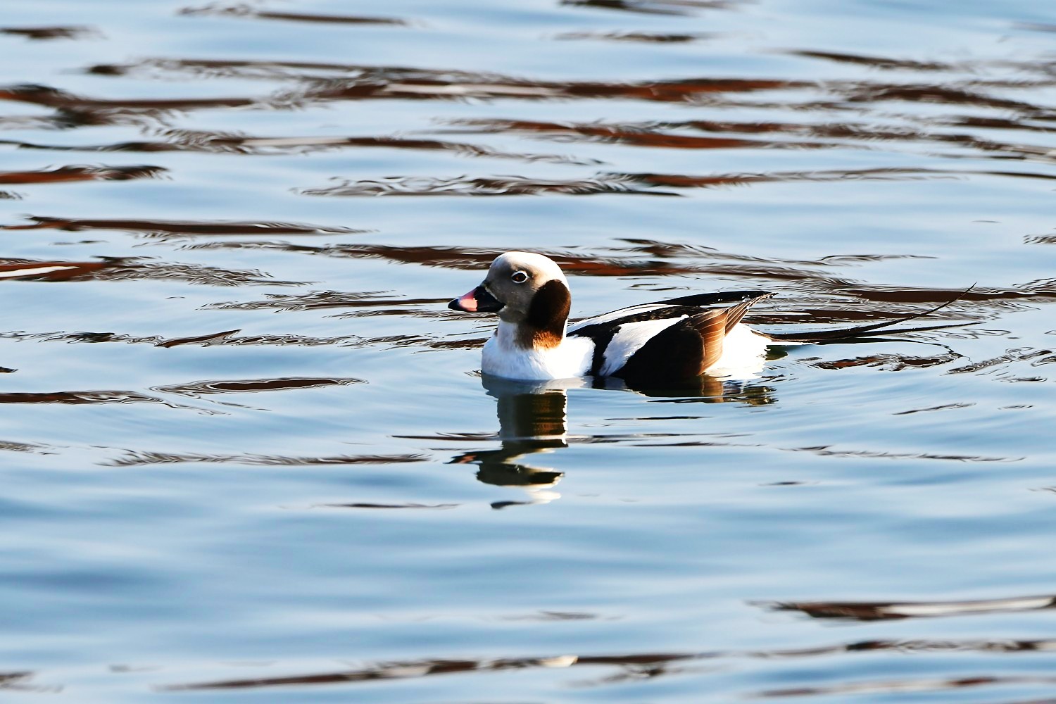 겨울에는 주로 흰색 머리와 목에 어두운 뺨 패치가 있고, 가슴은 어두운 편이며 몸은 대부분 흰색입니다.