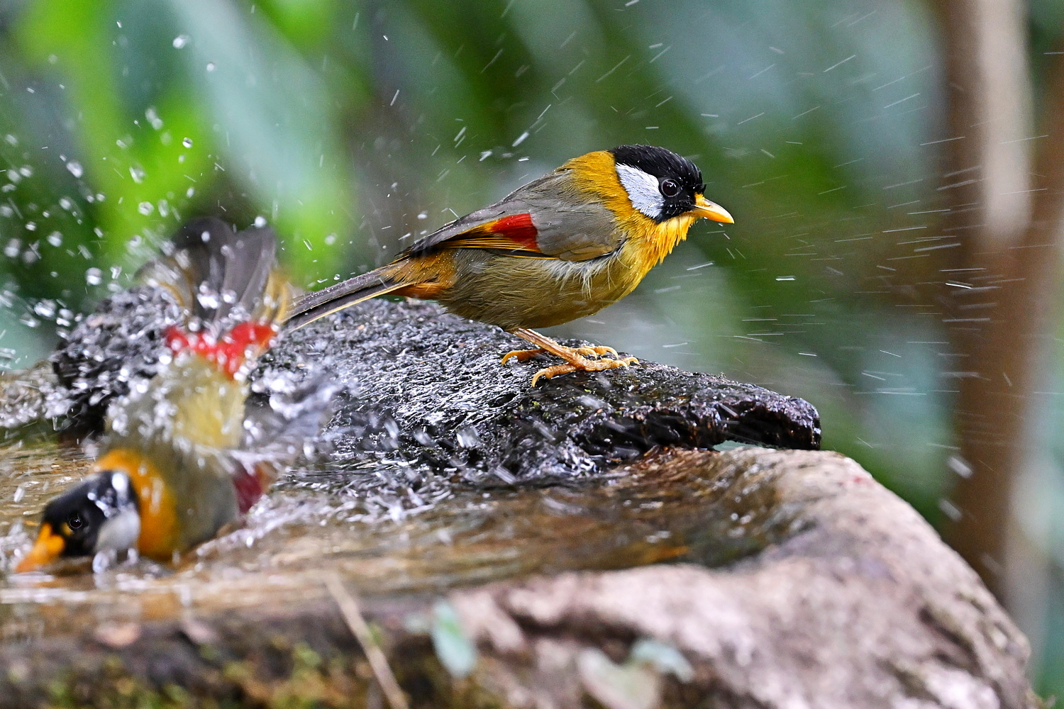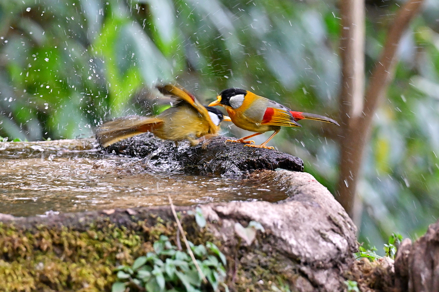 Silver-eared Mesias가 무리를 지어 먹이 활동을 한 후, 시원하게 목욕을 하는 동영상입니다.