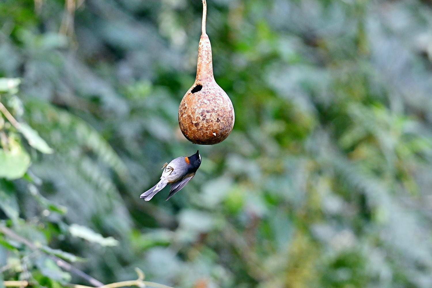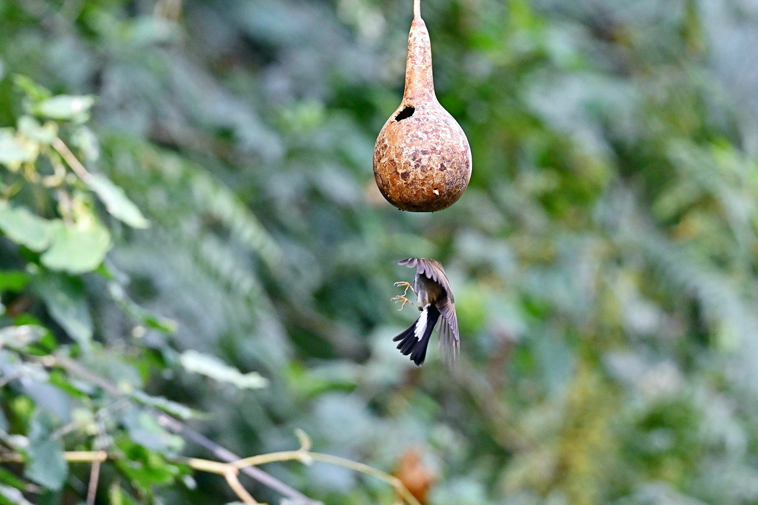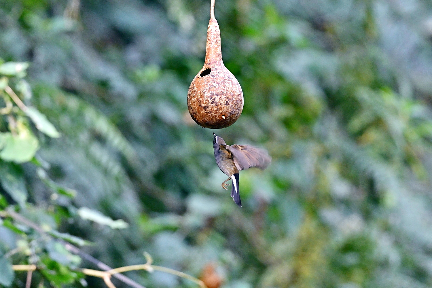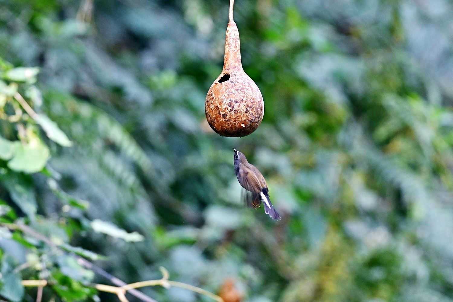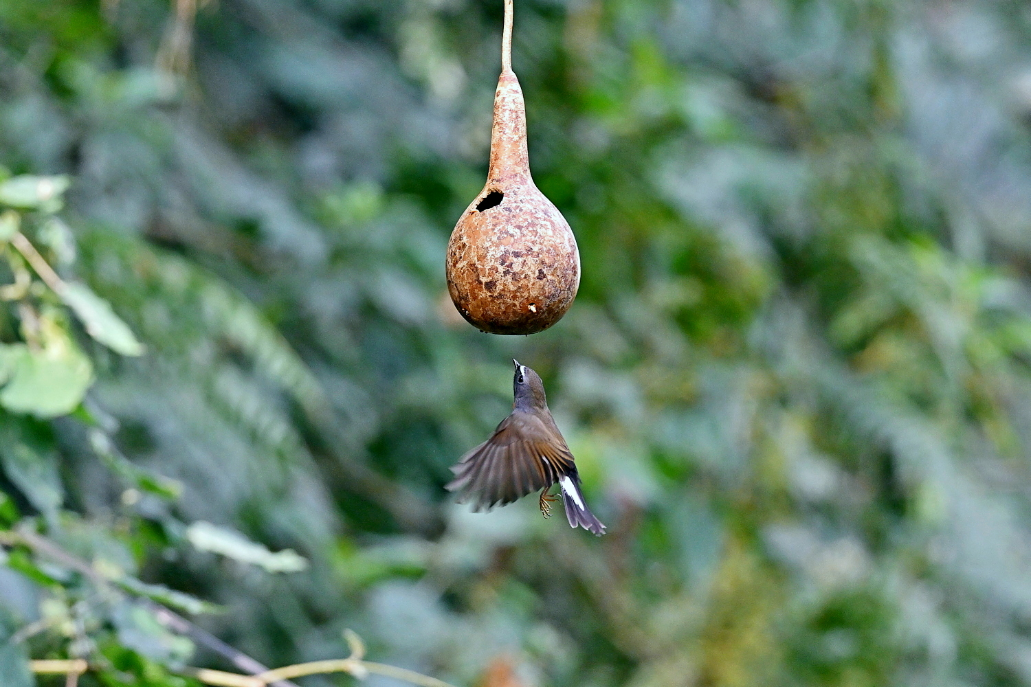 Rufous-gorgeted Flycatcher가 뒤웅박 속에 있는 Worm을 빼 먹는 장면입니다.