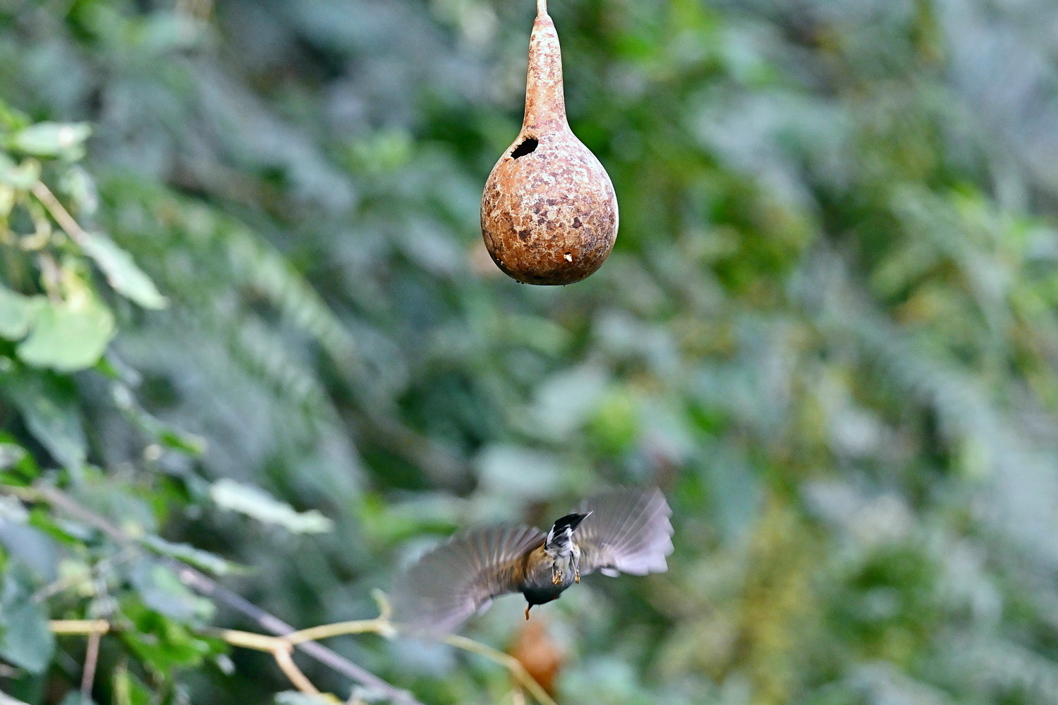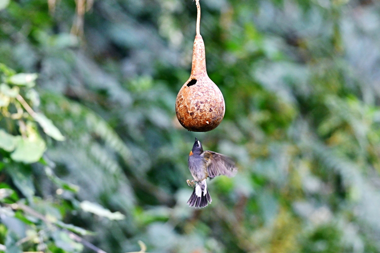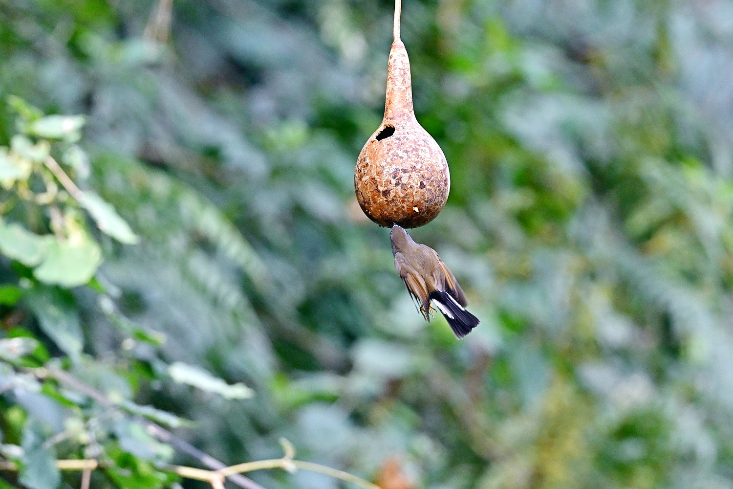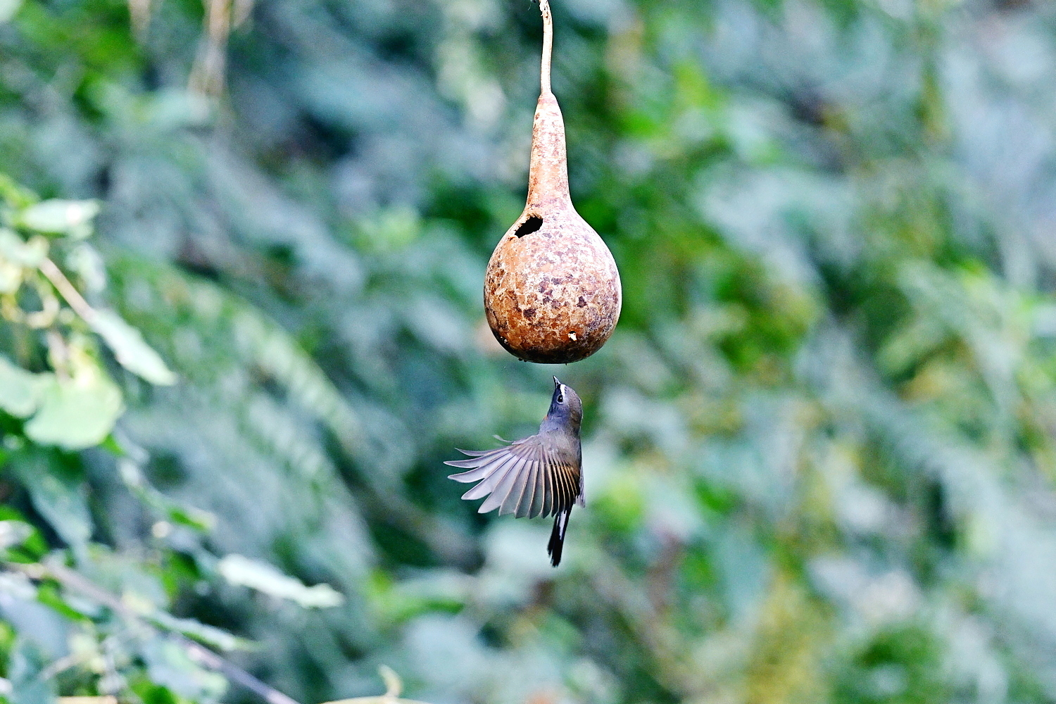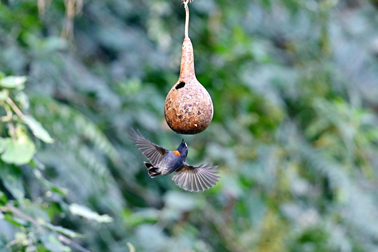 Rufous-gorgeted Flycatcher가 뒤웅박 속에 있는 Worm을 빼 먹는 장면입니다.