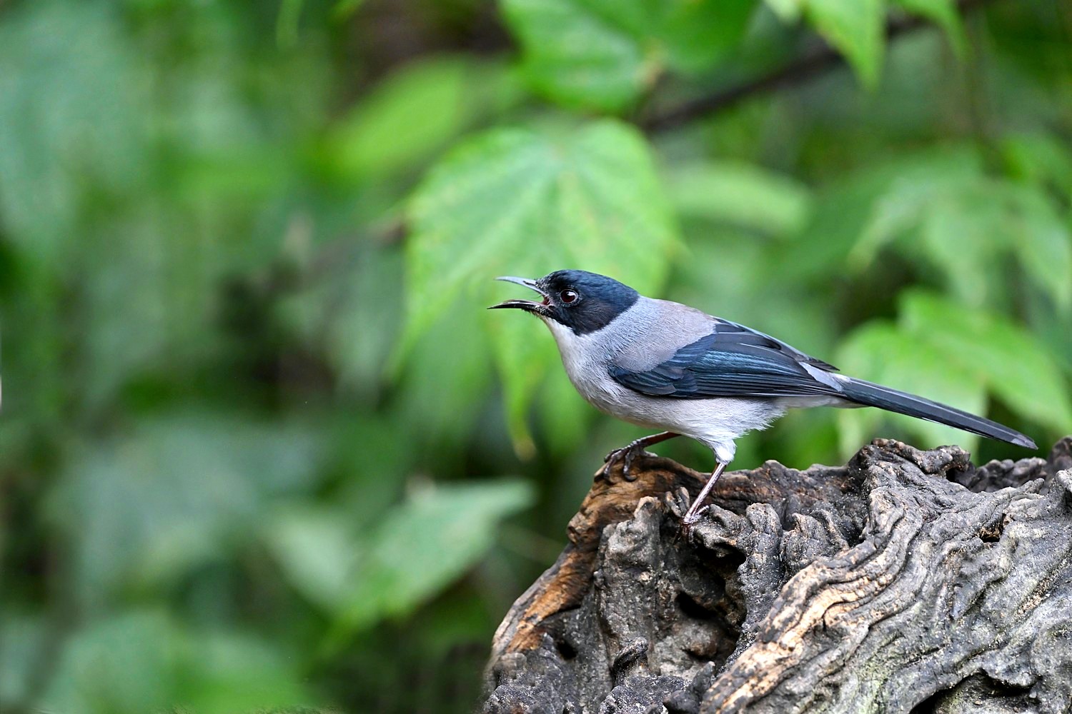 Somewhat recalling a darker, smaller Azure-winged Magpie, this medium-sized babbler is found in foothill to montane forests from central China to far southern Vietnam.