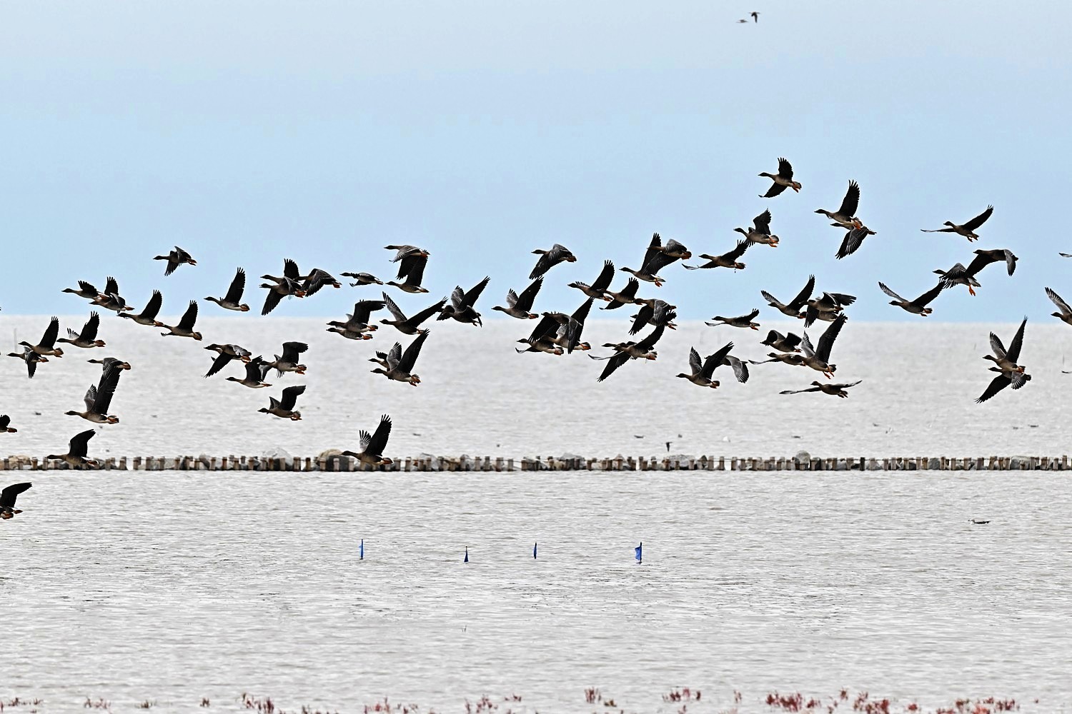 가을의 전령사인 큰기러기 떼가 돌아 왔네요.