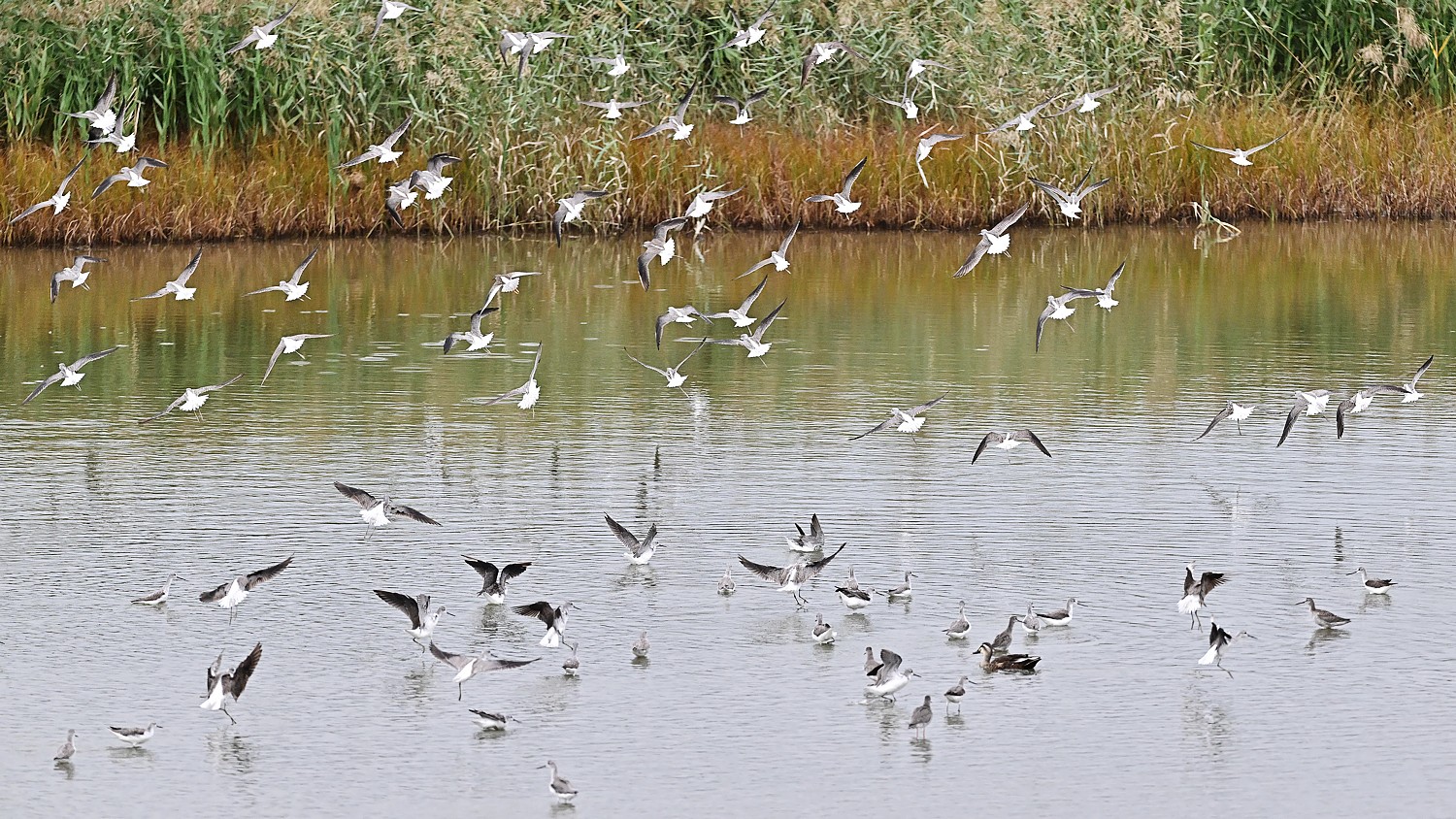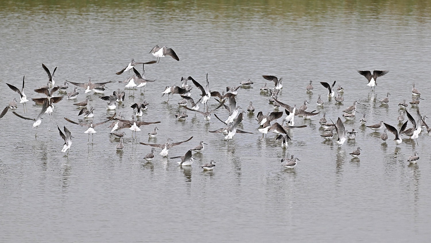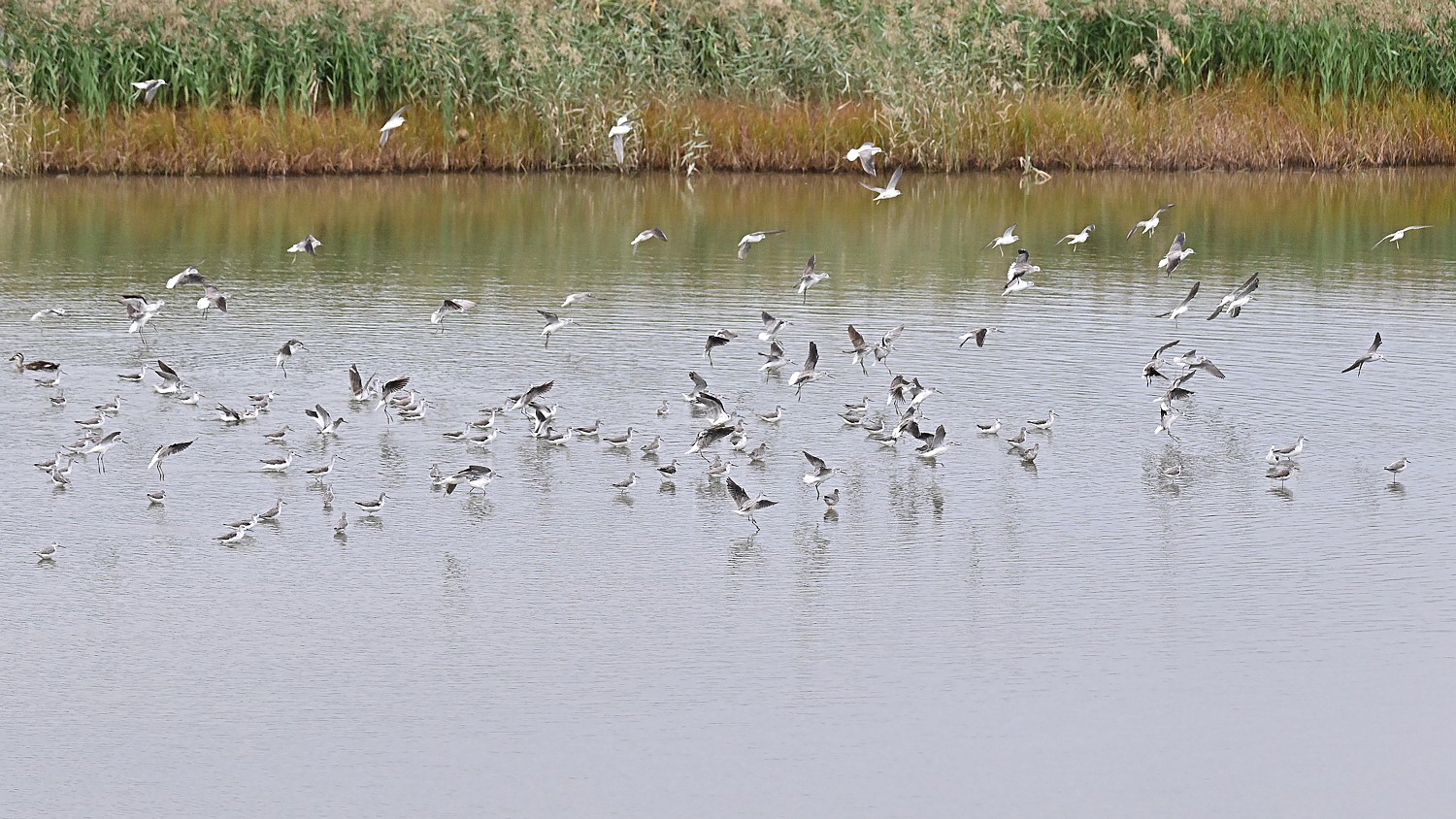 청다리도요들이 수백 여마리가 무리를 지어있는 모습이 장관이다.
