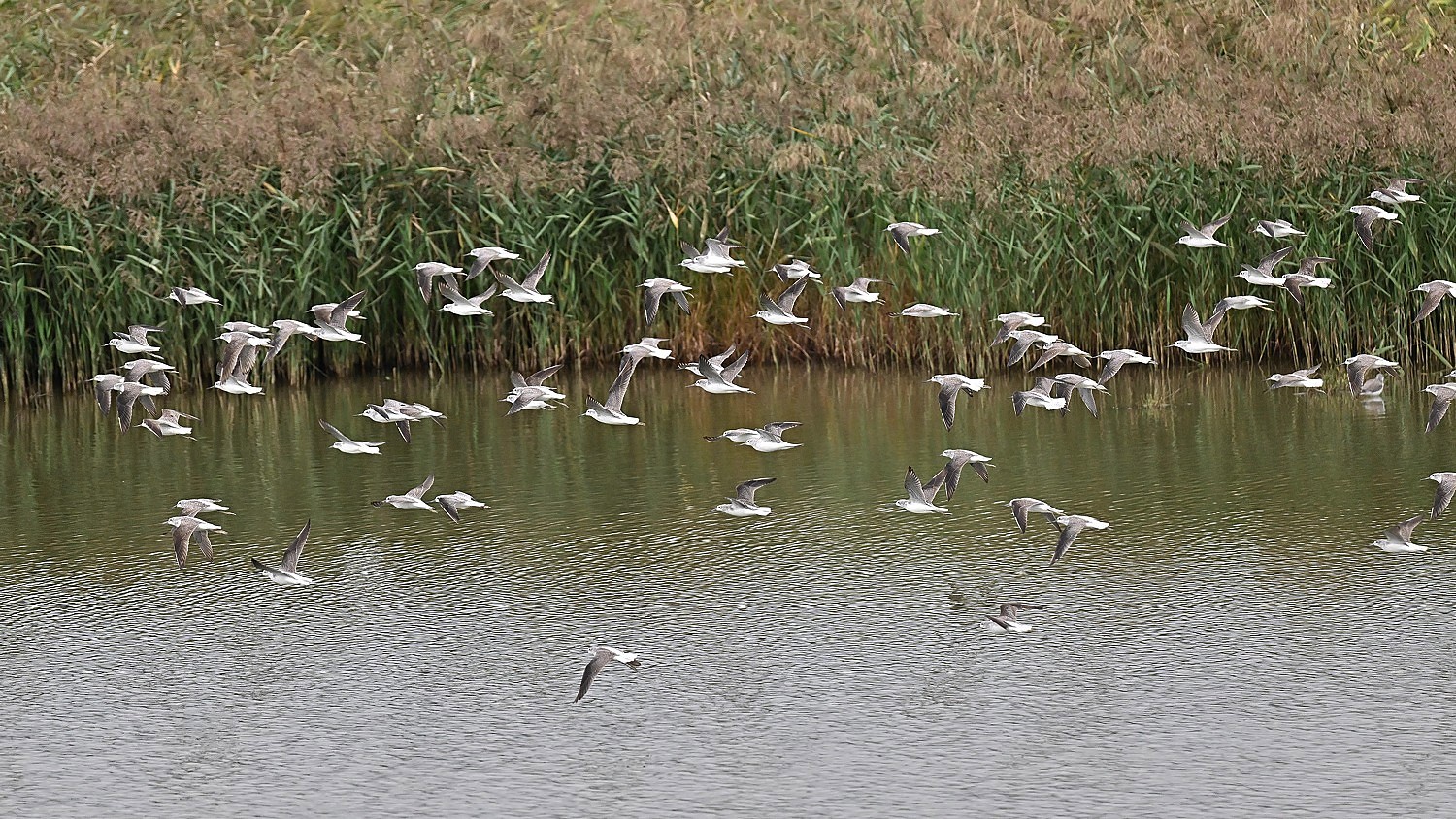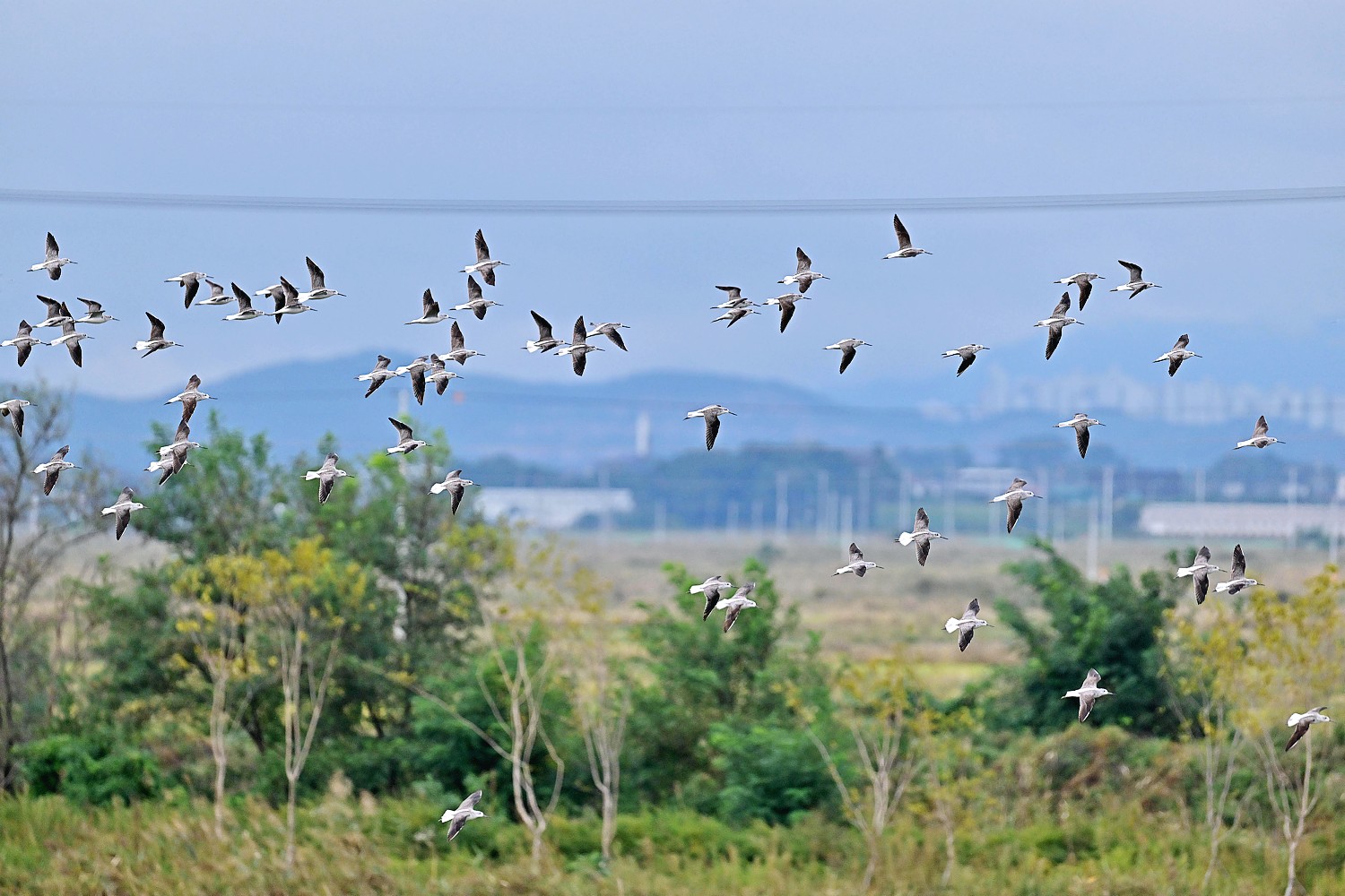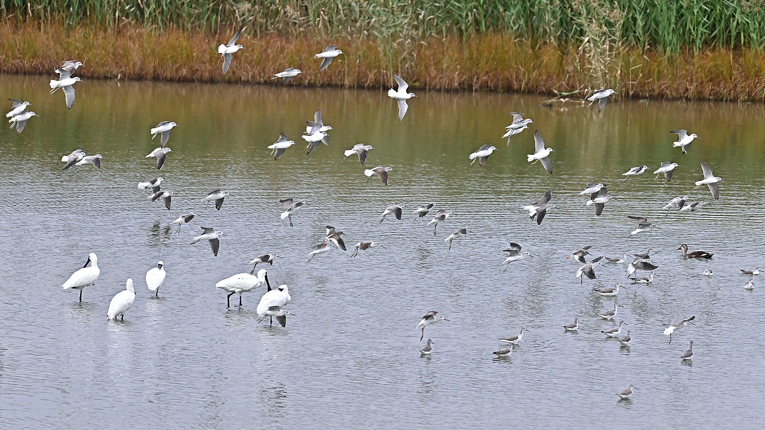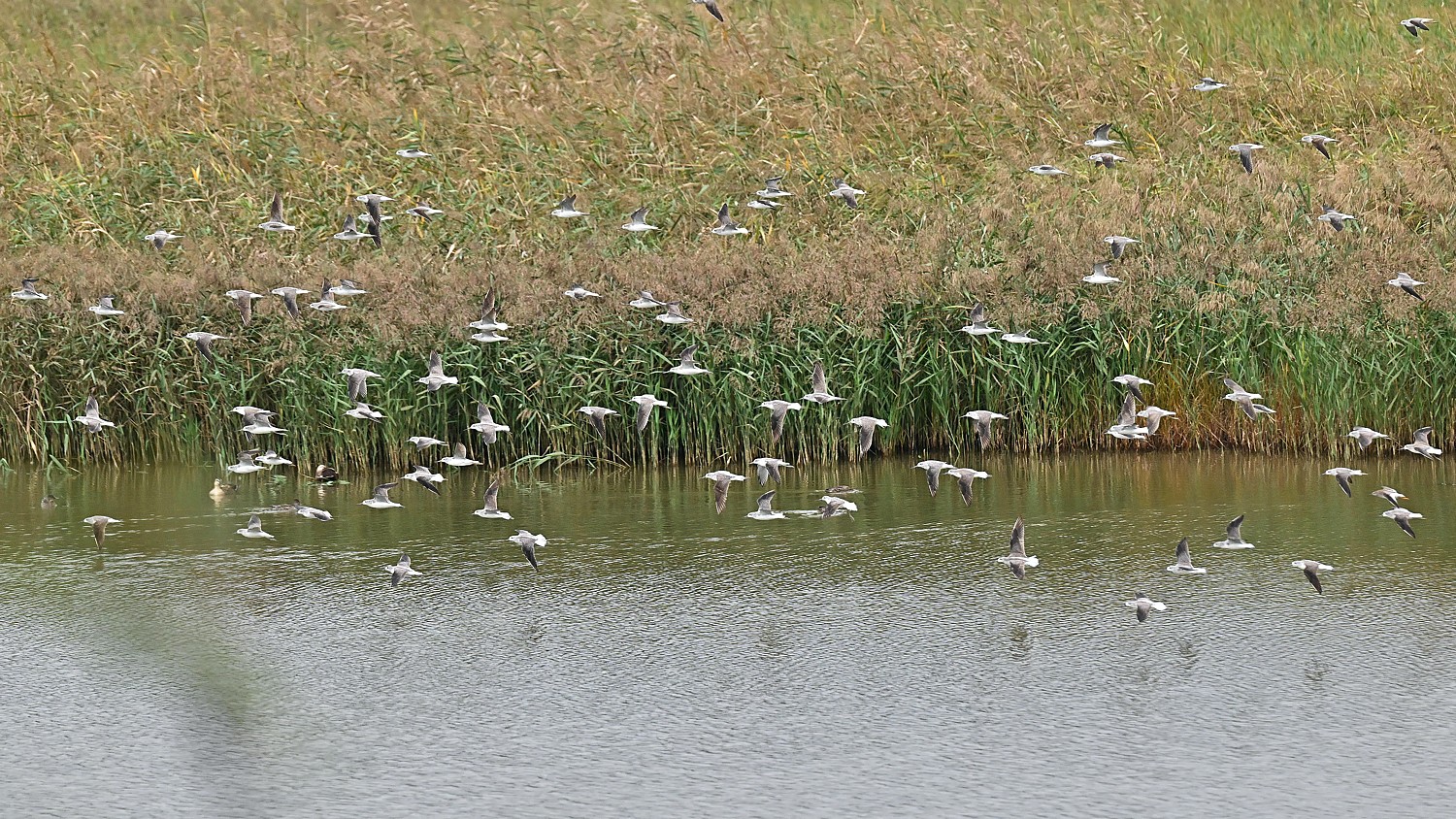 청다리도요들이 수백 여마리가 무리를 지어있는 모습이 장관이다.