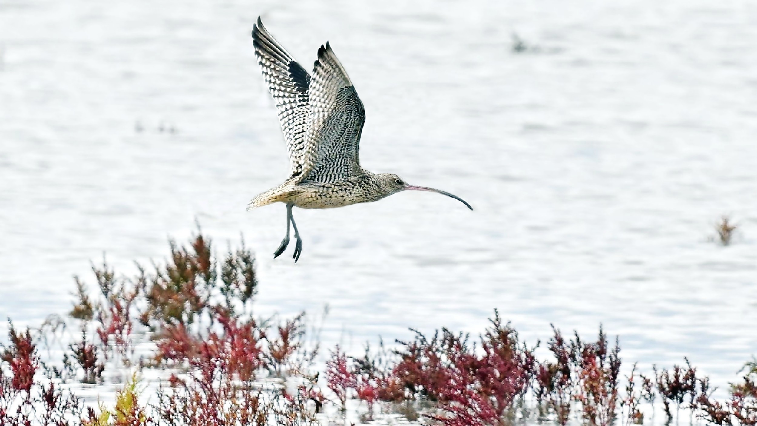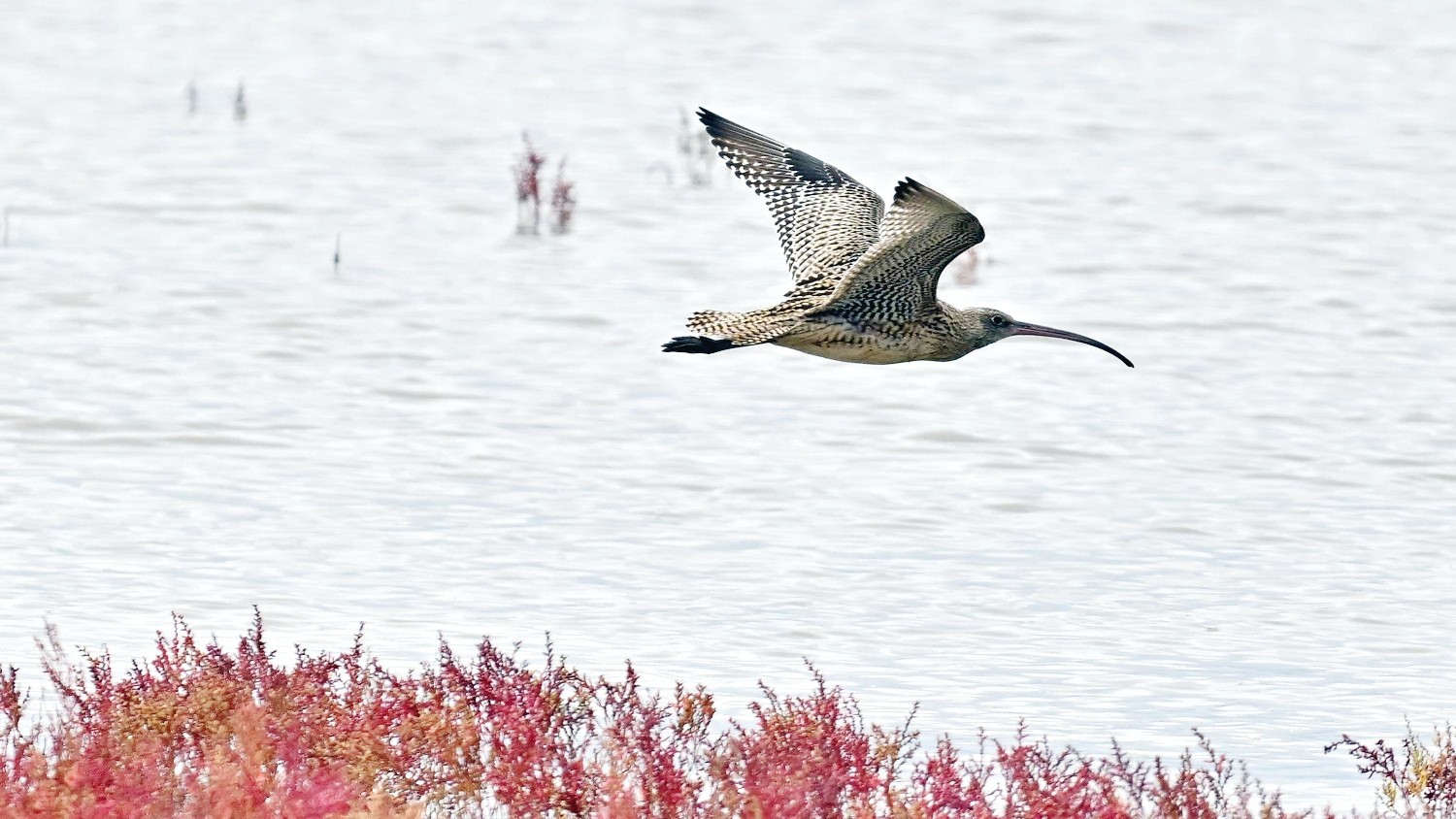During its migration the Far Eastern curlew commonly makes stopovers on the mudflats of the Yellow Sea and some on the coasts of Japan.