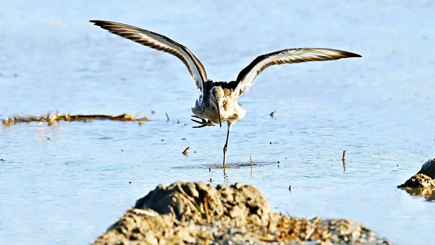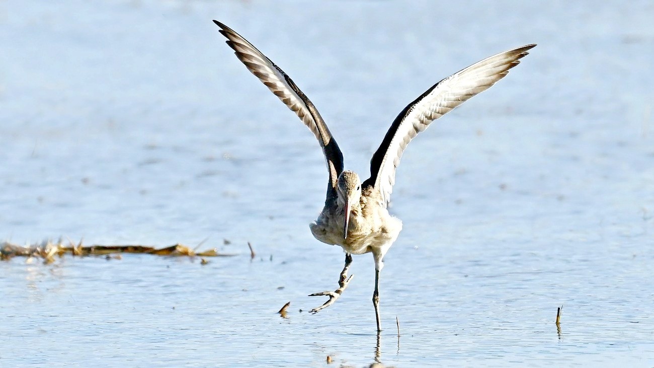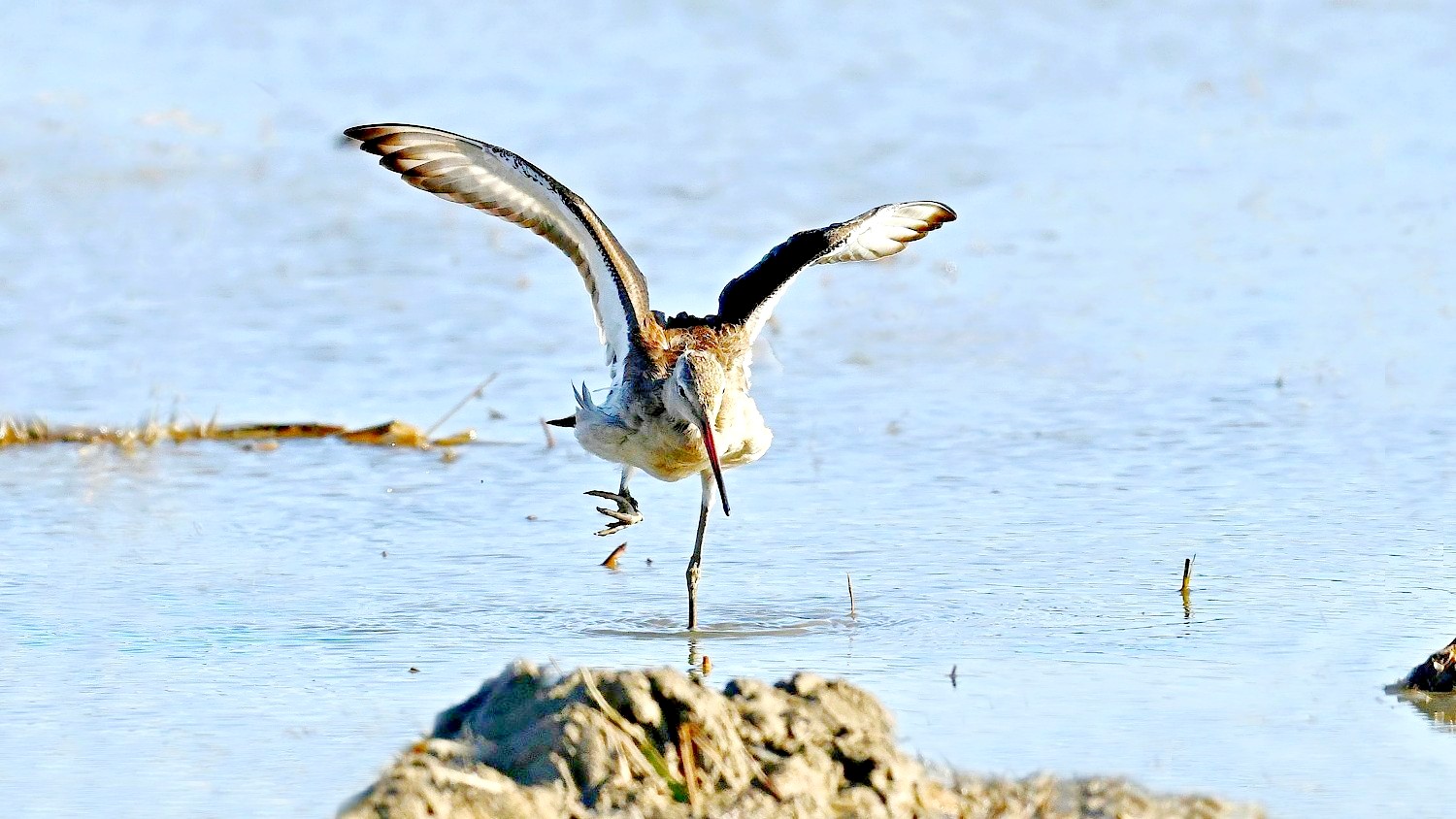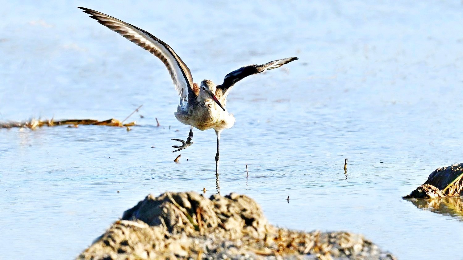 흑꼬리도요가 먹이 활동중 날개짓을 하는 모습들이다.