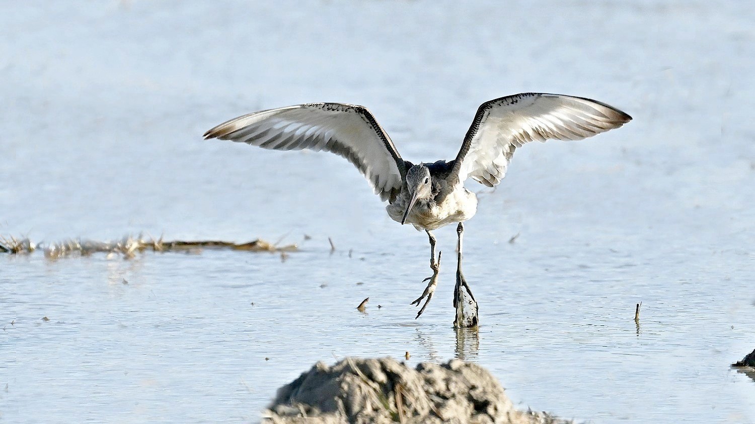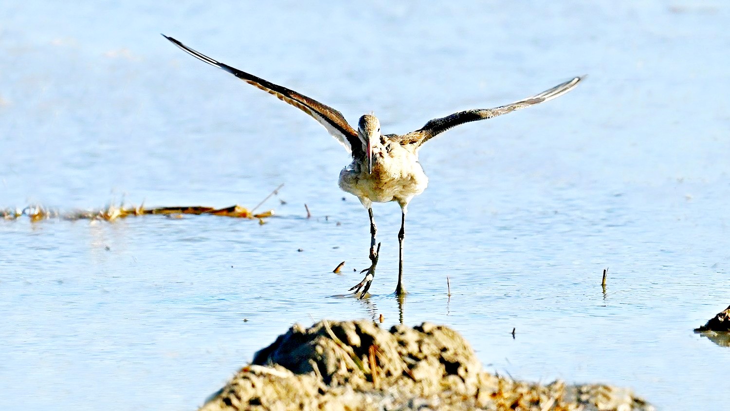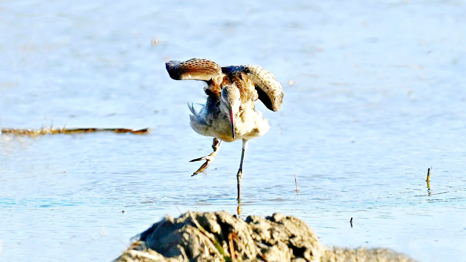 흑꼬리도요가 먹이 활동중 날개짓을 하는 모습들이다.