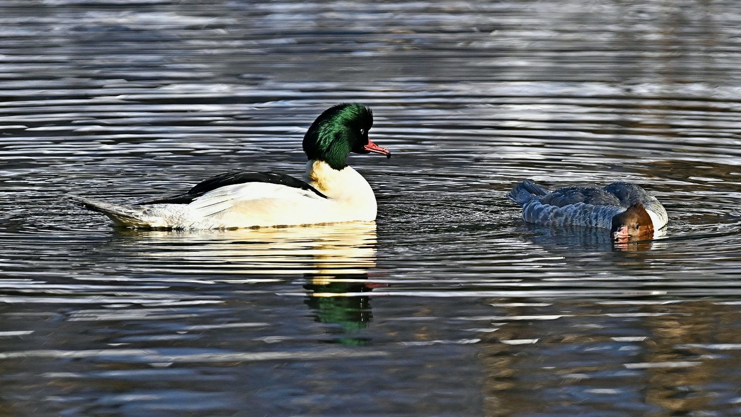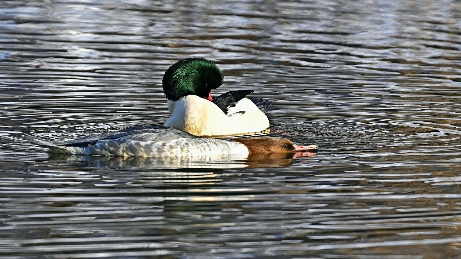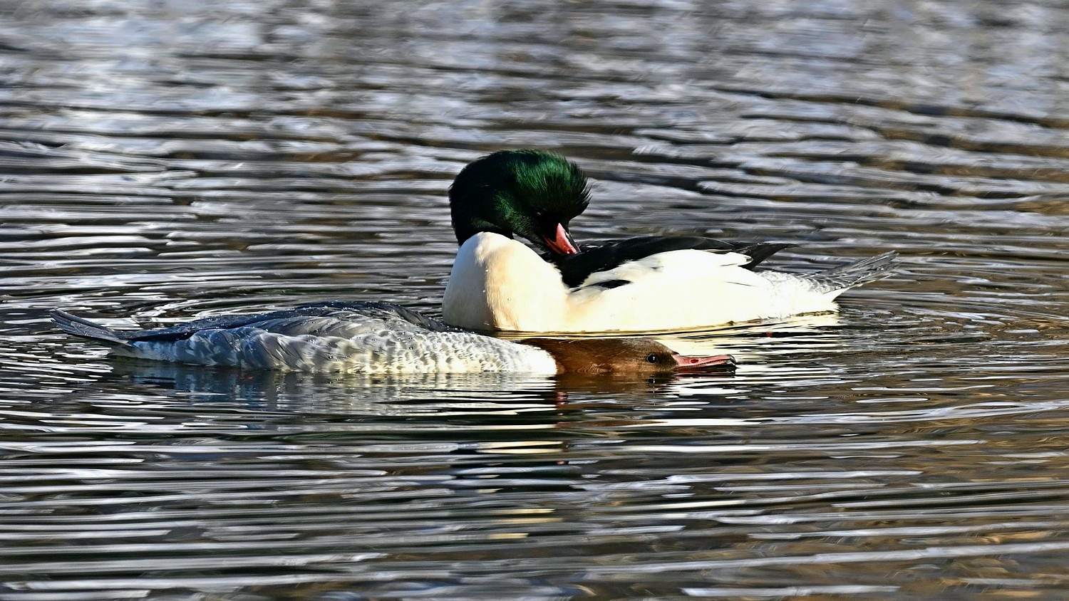 비오리 구애의 주요 특징은 수컷이 암컷 앞에서 독특한 춤과 몸짓을 선보이며 짝을 유혹하는 행위를 의미합니다.