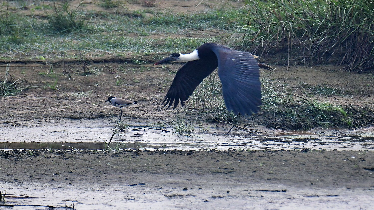 The Asian woolly-necked stork or Asian woollyneck is a species of large wading bird in the stork family Ciconiidae. It breeds singly, or in small loose colonies. It is distributed in a wide variety of habitats including marshes in forests, agricultural areas, and freshwater wetlands across Asia.