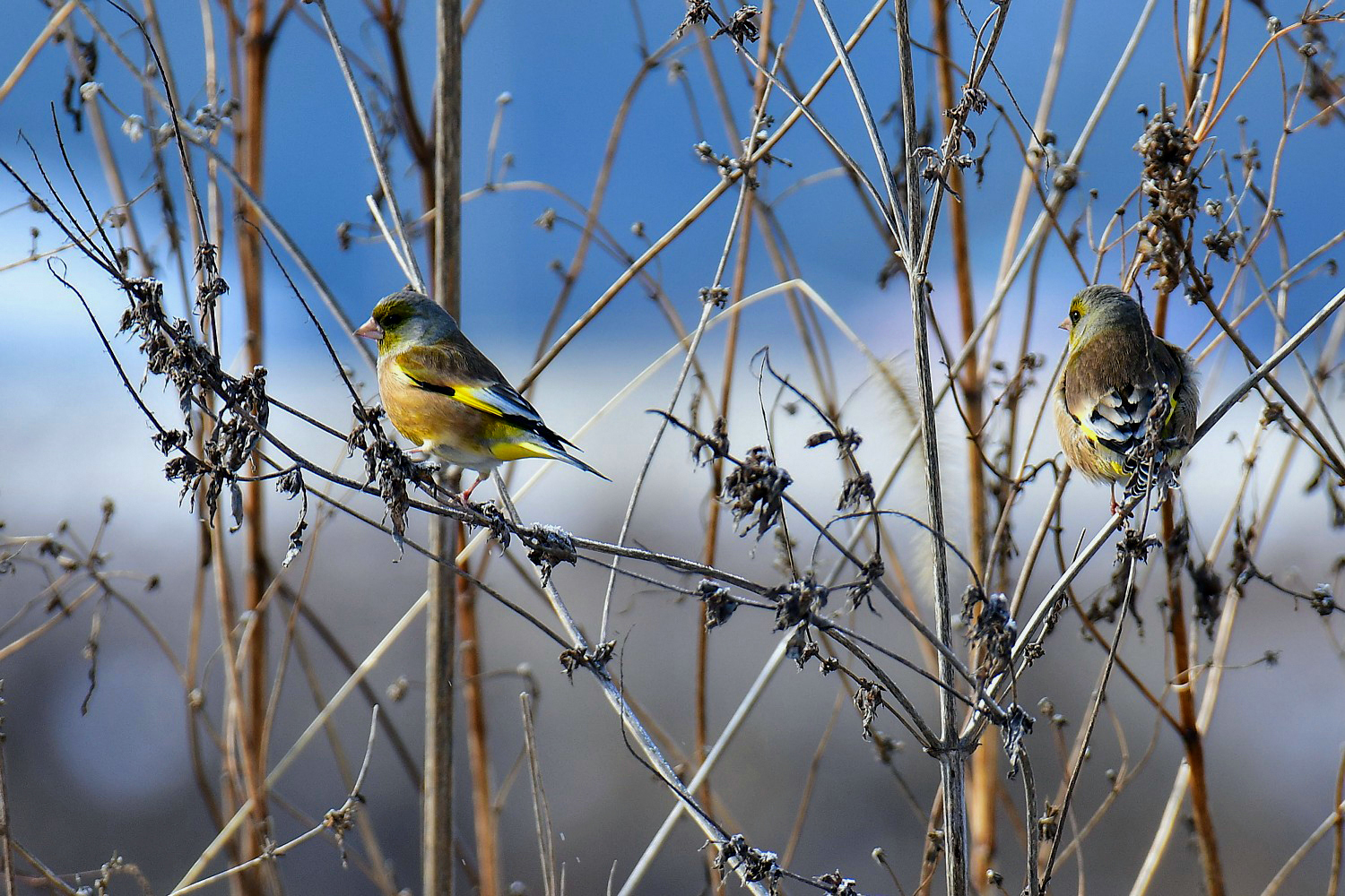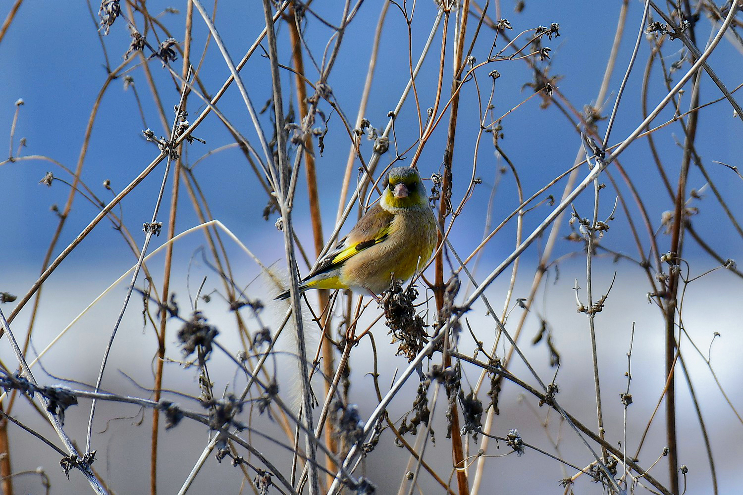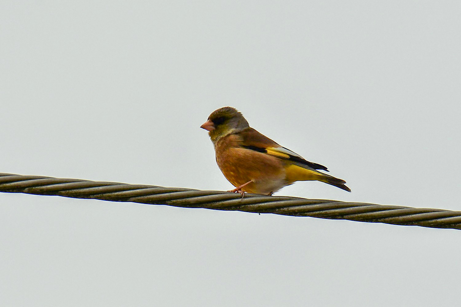 The Grey-capped Greenfinch is a common breeding resident bird in Korea.