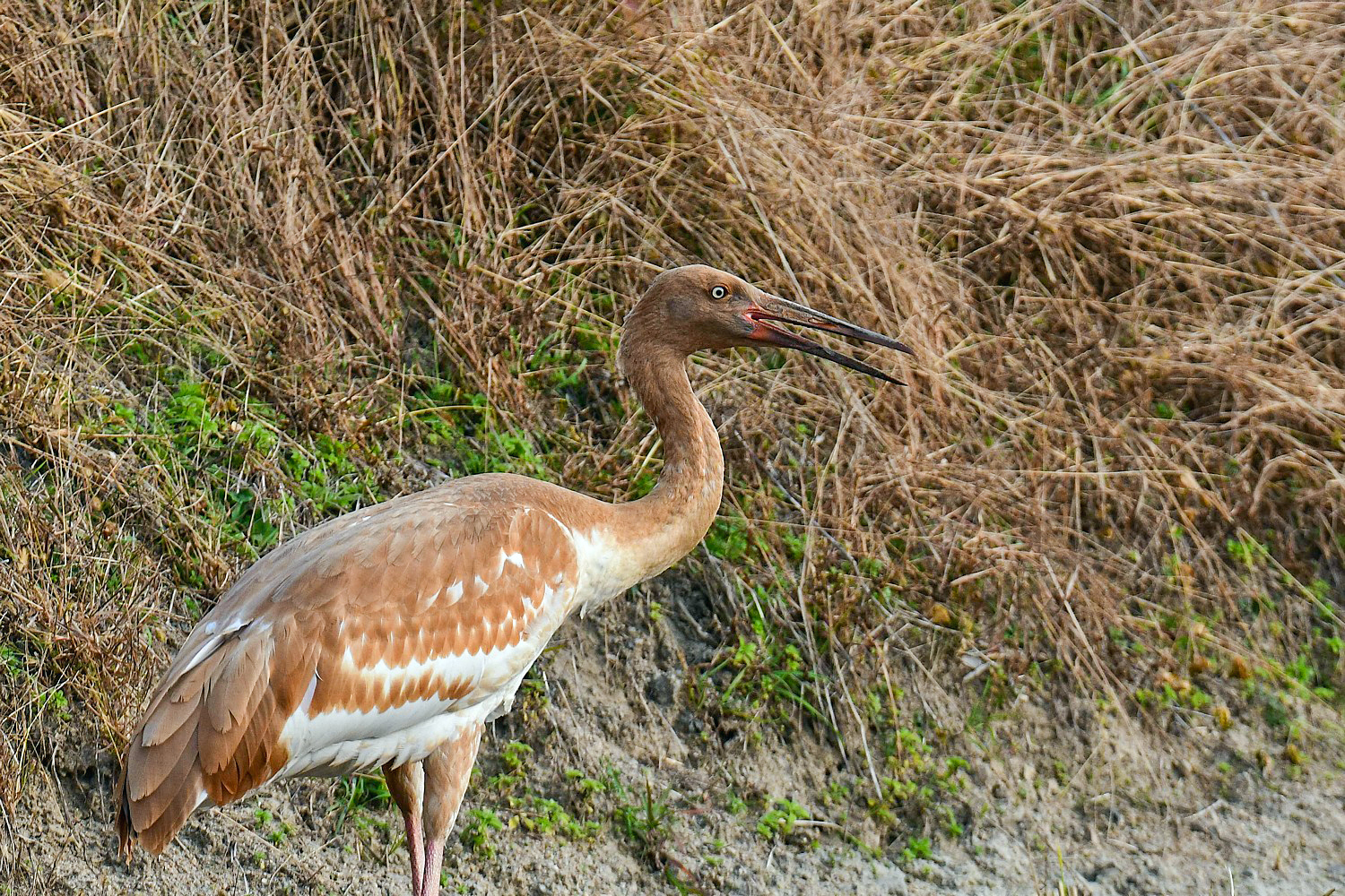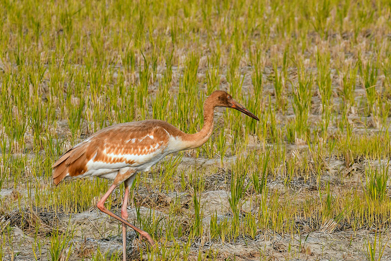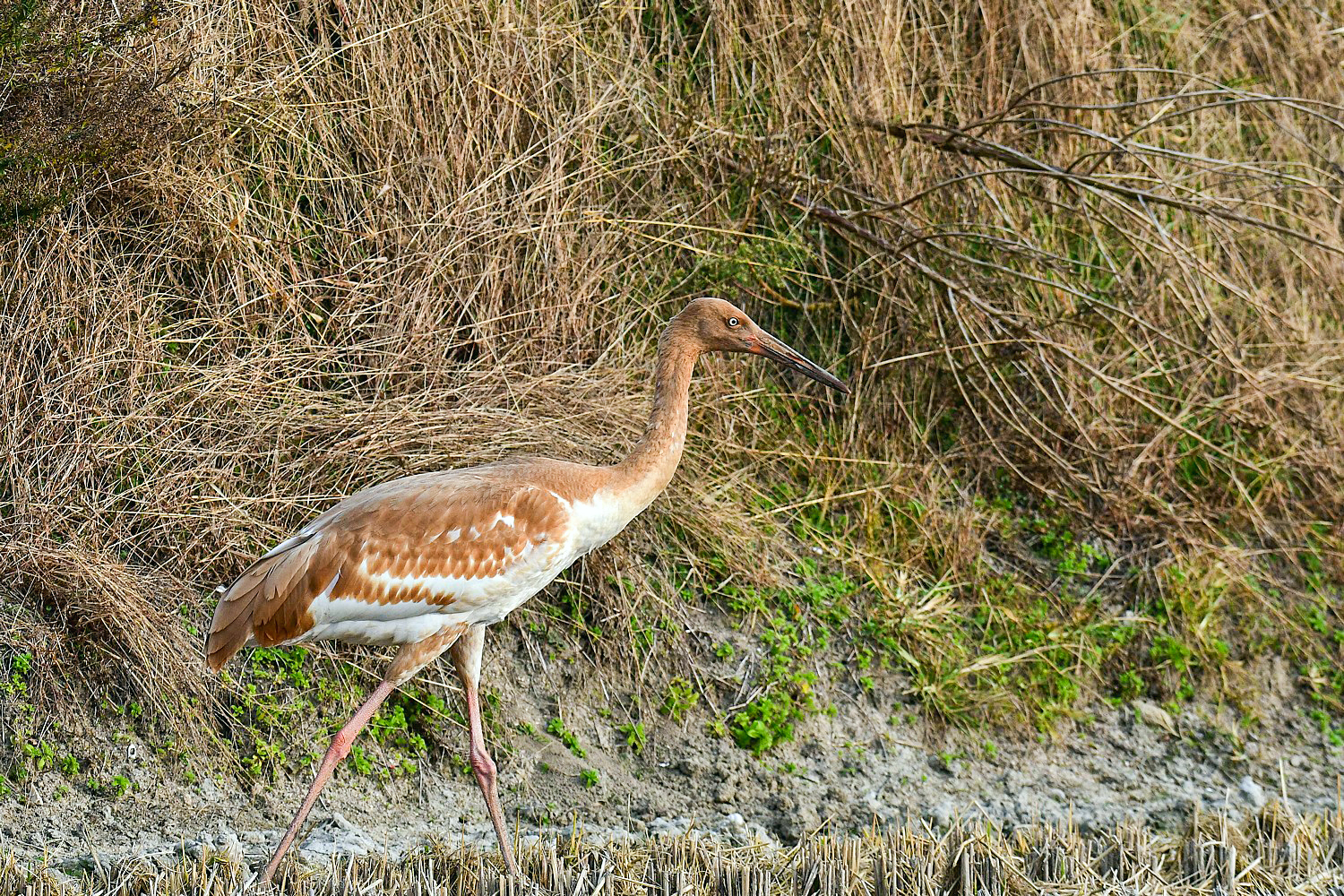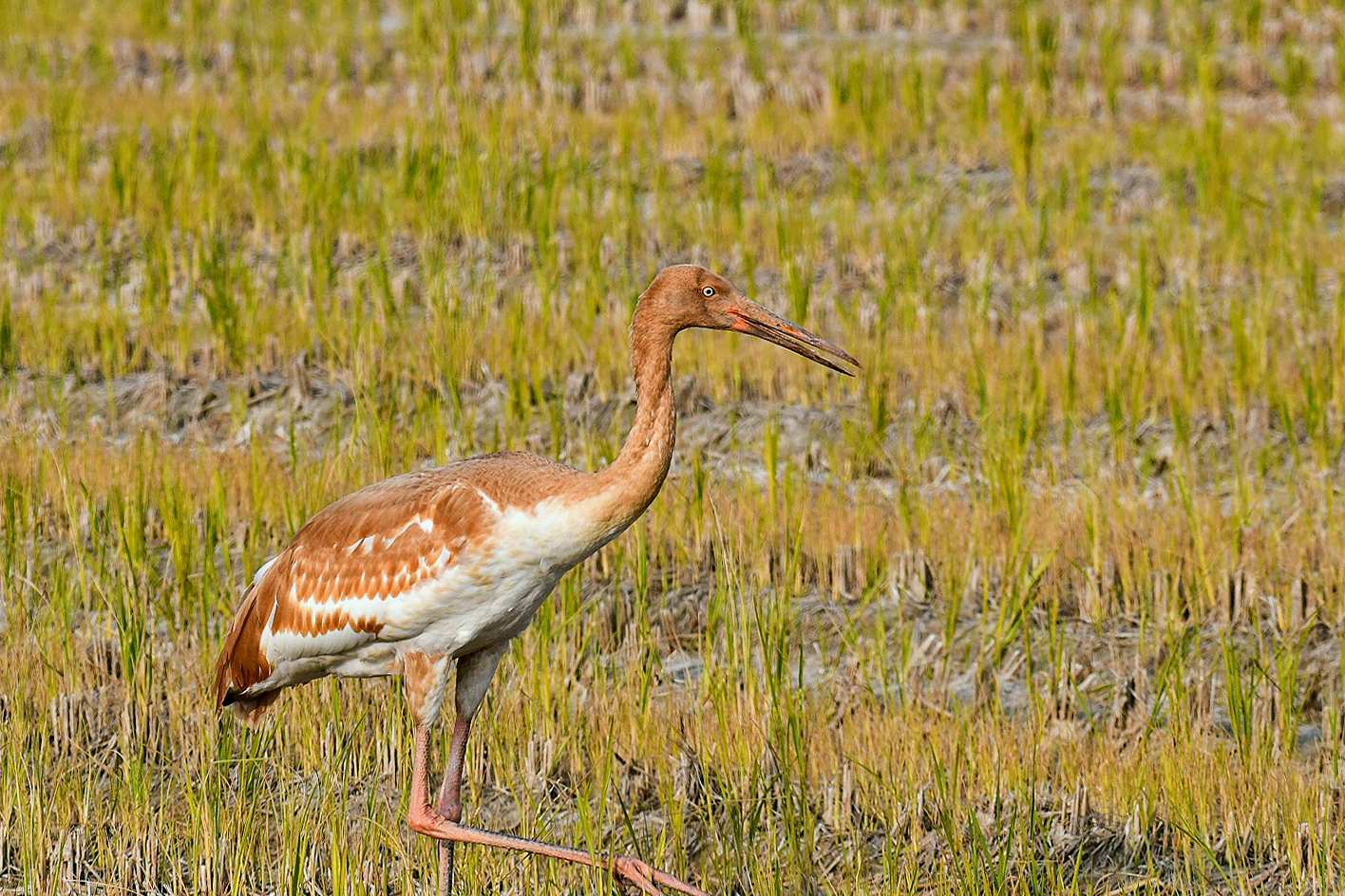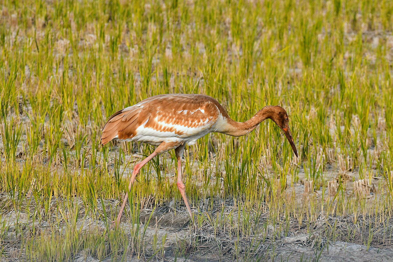 A juvenile Siberian white crane that came to Cheonsuman Bay alone last winter , goes around the rice paddies looking for prey, but has not found prey at all. This situation is very sorry.